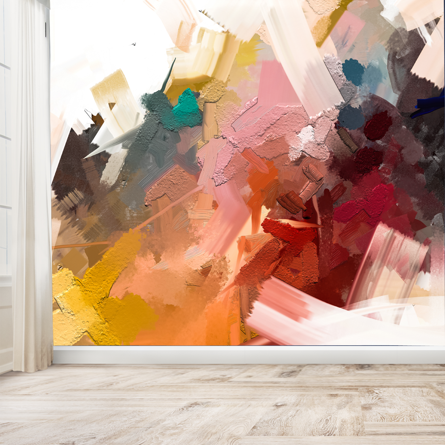 Multi Color Patch Abstract Digitally Printed Wallpaper