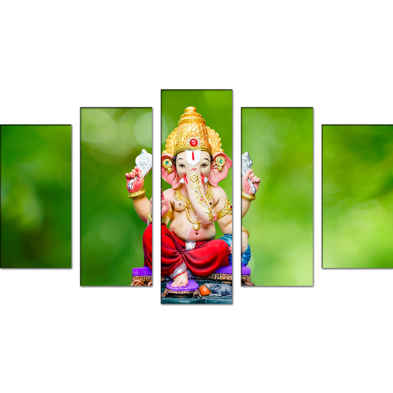 Cute Lord Ganesha Canvas Wall Painting- With 5 Frames
