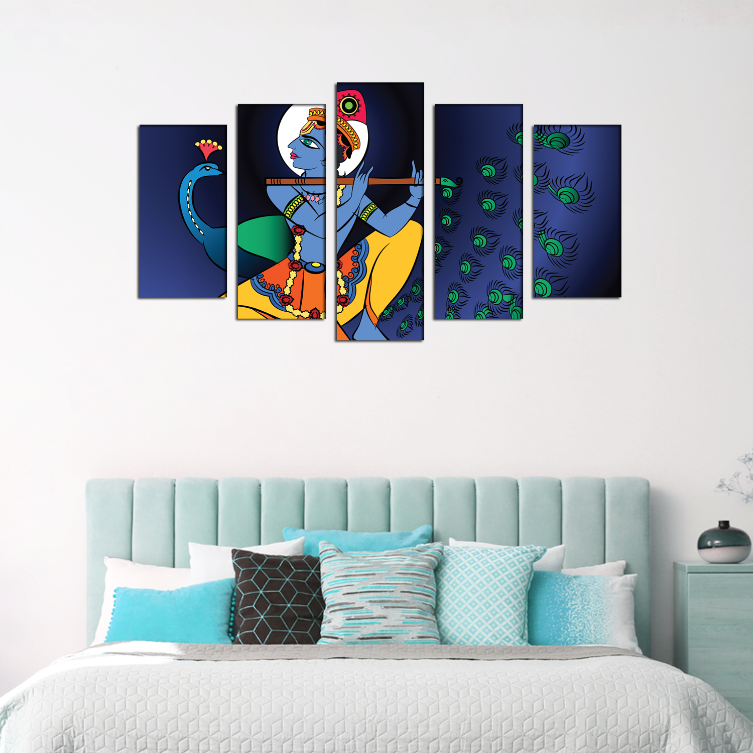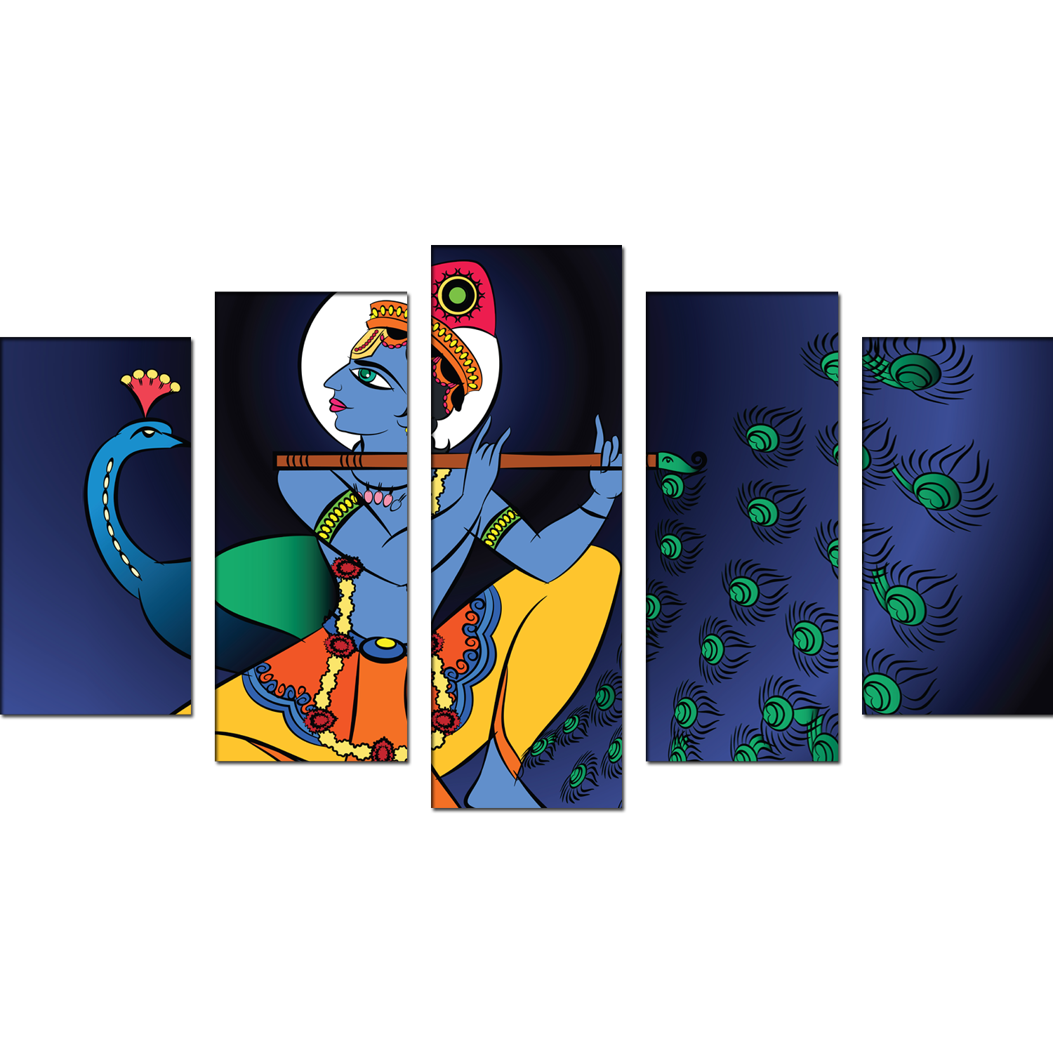 Lord Krishna Modern Art Canvas Wall Painting- With 5 Frames