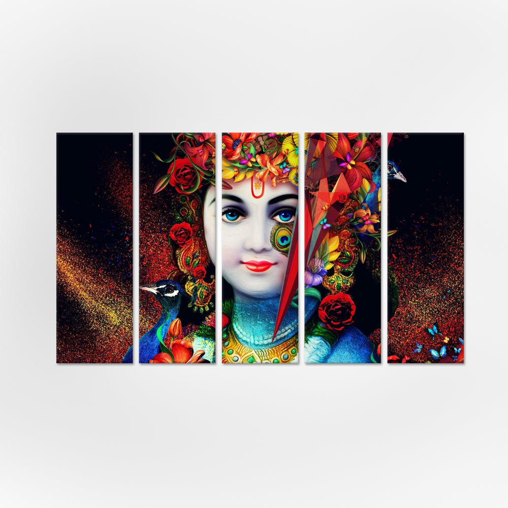 Lord Krishna Canvas Wall Painting - With 5 Panel
