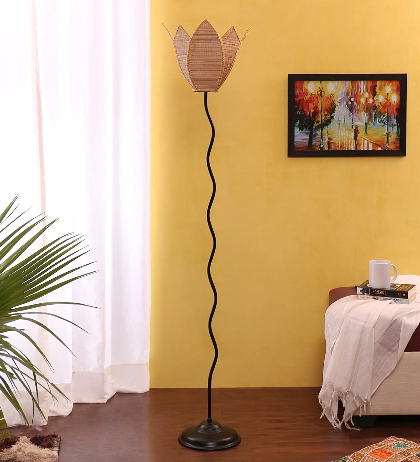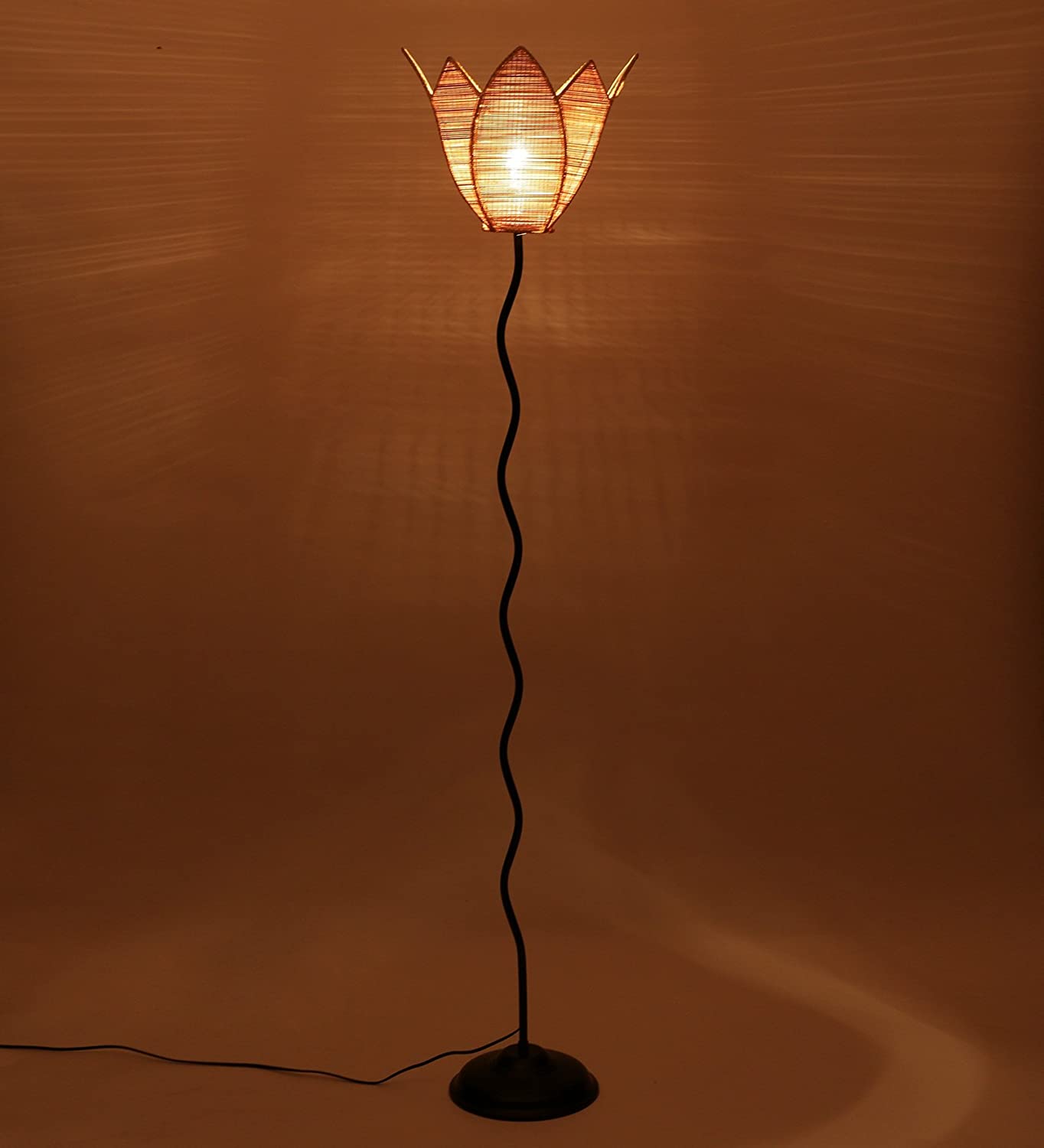 Lotus Bamboo Designer Zig Zag Iron Floor Lamps (Bamboo)