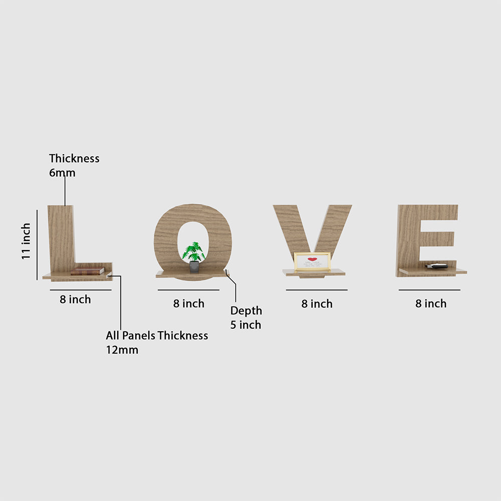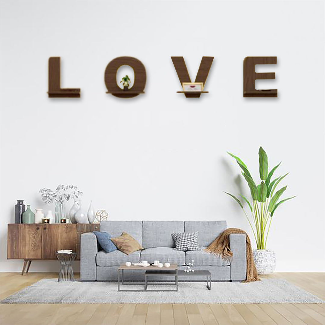 This Love alphabetic walnut wooden bookshelf design can upgrade the look and feel of your house. You can place crystal stones, small décor potted plants, miniature décor pieces, mini books, and more on these four love alphabet bookshelves designs. Not only can these lovely alphabetic wooden wall shelves be used for decorating the bedroom, living room, office, or study room, but you can also gift them to a person with a special place in your heart. The classy wall décor illuminating item is a creative option for adding a sense of shine and charm to your space. Give these wall-mounted wooden shelves a chance to spread love and affection in the surroundings.