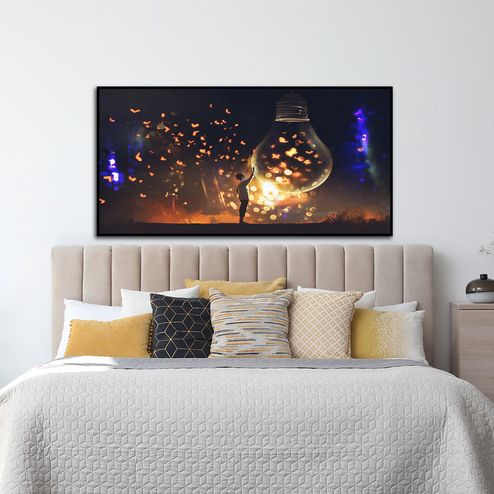 Man With Glowing Big Bulb Canvas Floating Frame Wall Painting