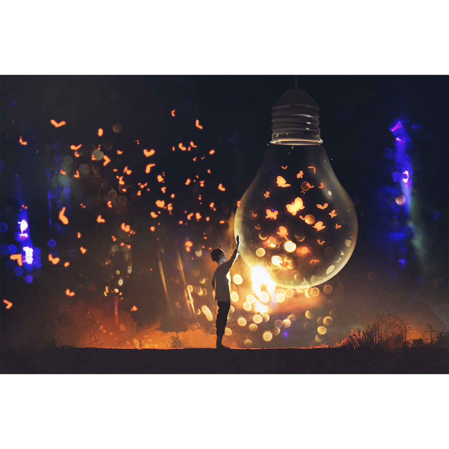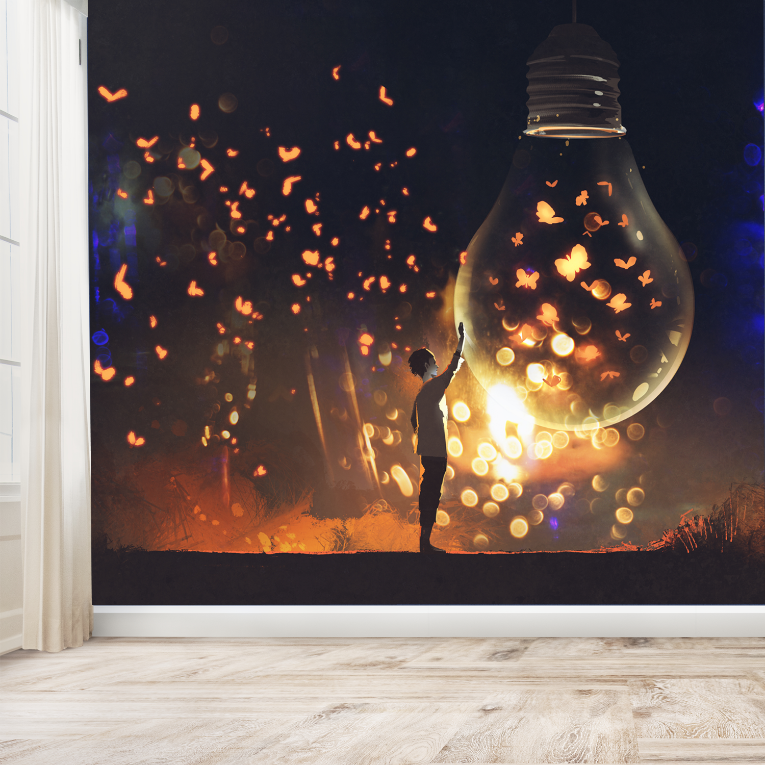 Man With Glowing Big Bulb Digitally Printed Wallpaper