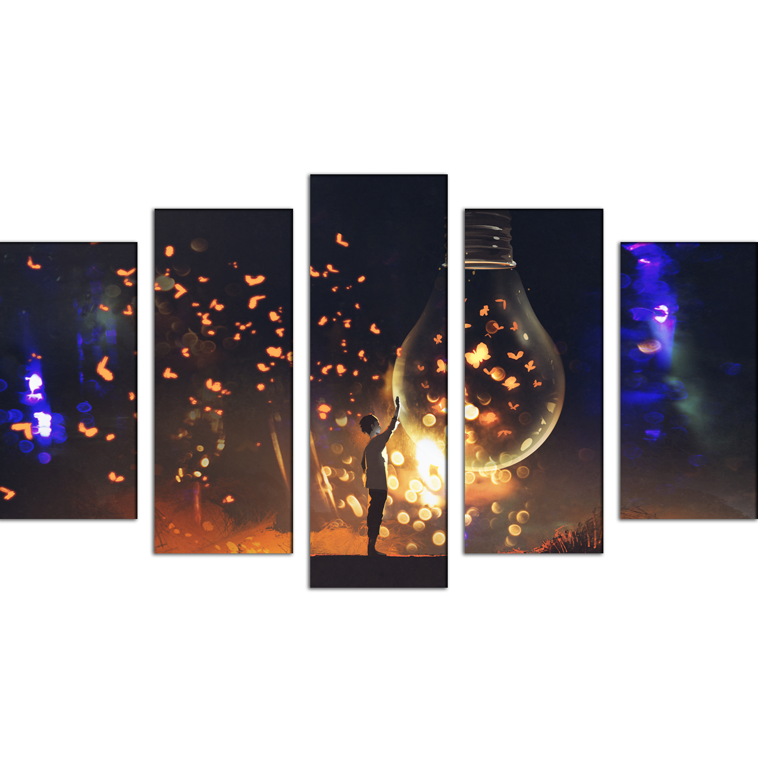 Man With Glowing Big Bulb Canvas Wall Painting- With 5 Frames