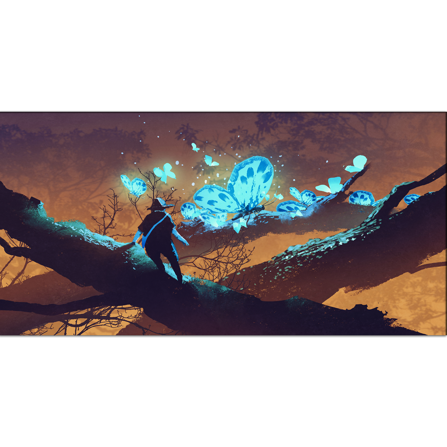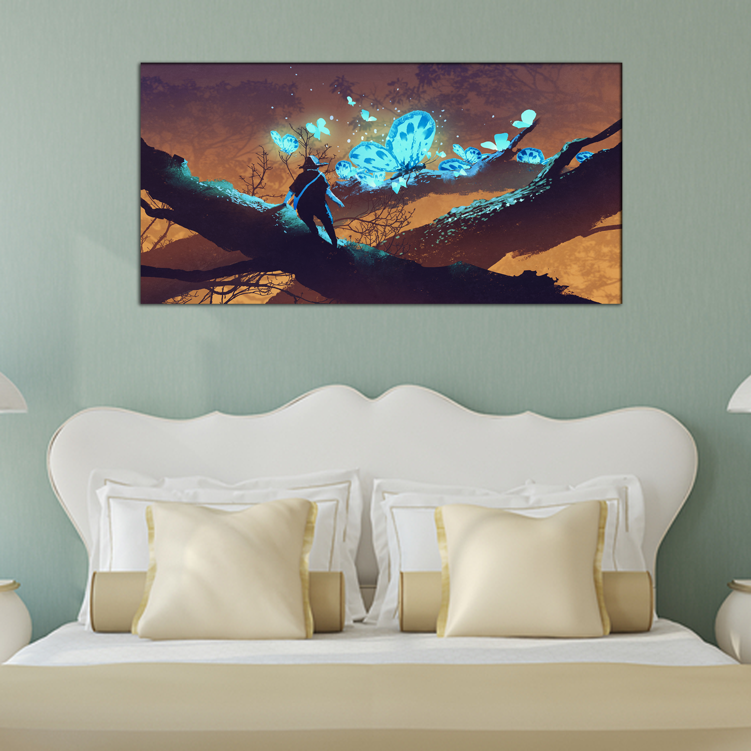 Man Looking at Blue Butterflies Canvas Wall Painting