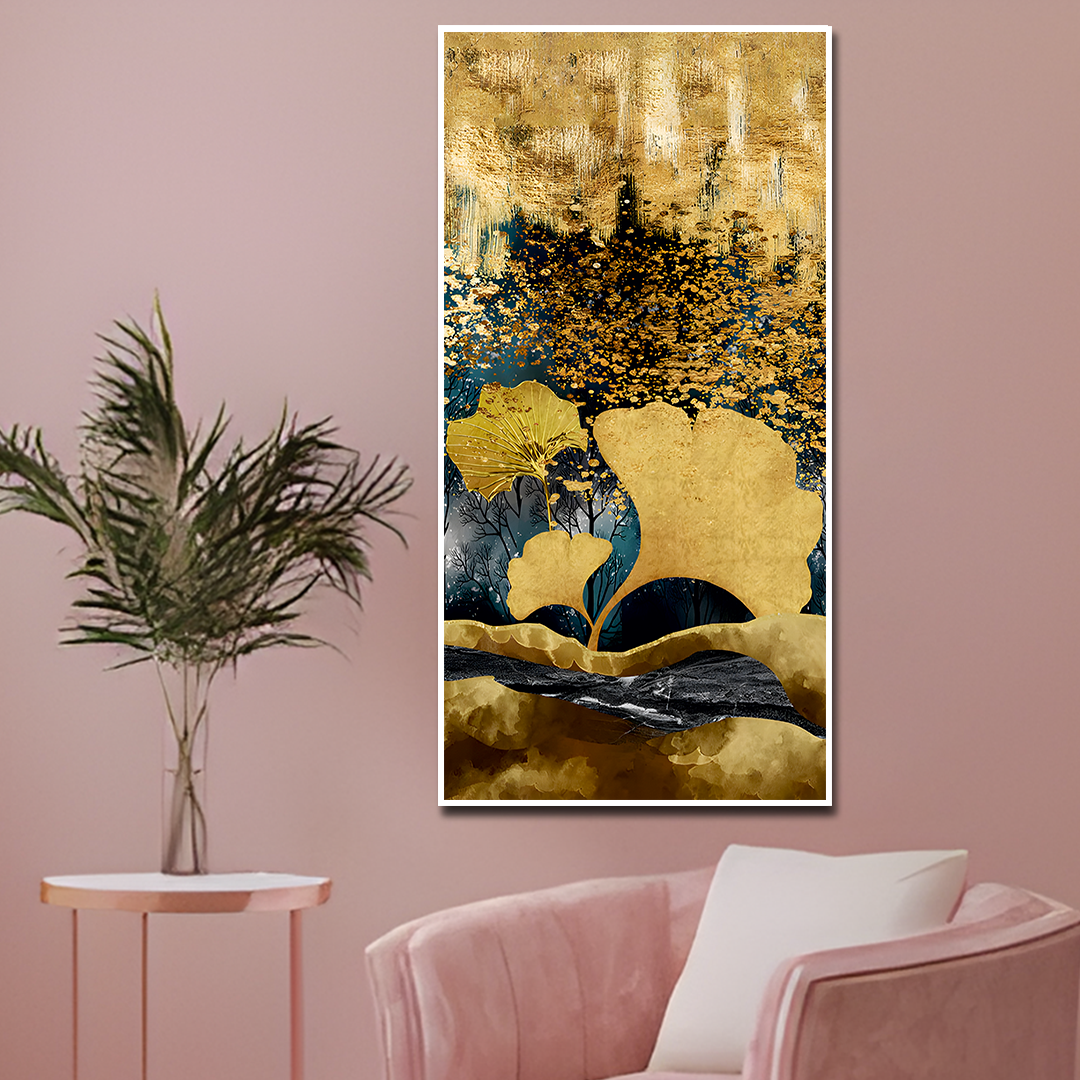 Modern Golden Ginkgo Leaves with Mountains Premium Canvas Floating Frame Wall Painting is a symbol of peace & prosperity. Fall in love with this beautiful and designer wall painting as a part of your home decor. Available in three canvas colors, it is a perfect living room painting that can completely change the look of your home. It is mounted on a strong and robust wooden frame which is made of American Pine thereby making it resistant to bending at corners due to the constant pressure of hanging on the wall. These canvas wall art are printed in HD quality and also use Eco-friendly inks that leave no residue or fumes in the environment around where it is put.