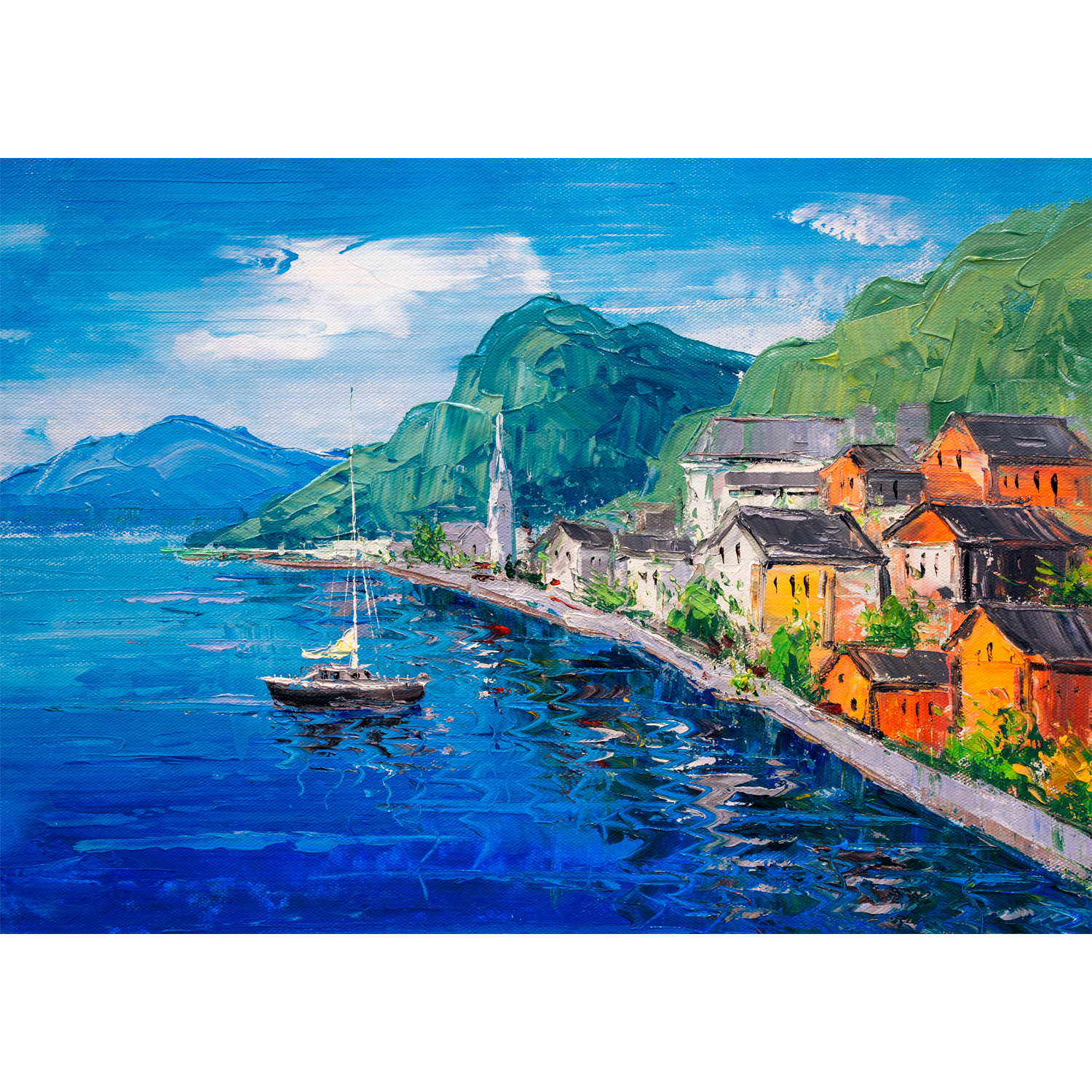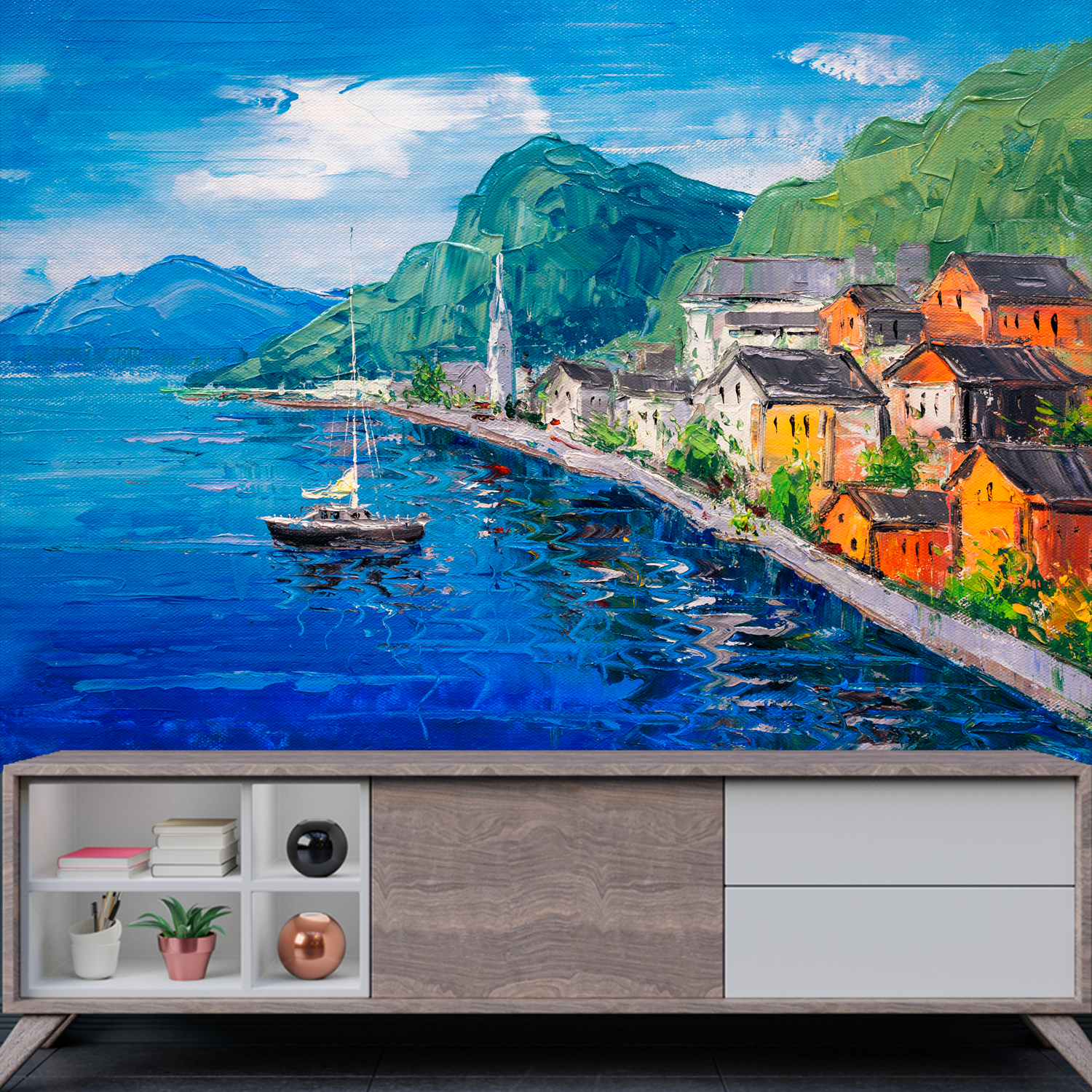 Abstract Lake Scenery Digitally Printed Wallpaper