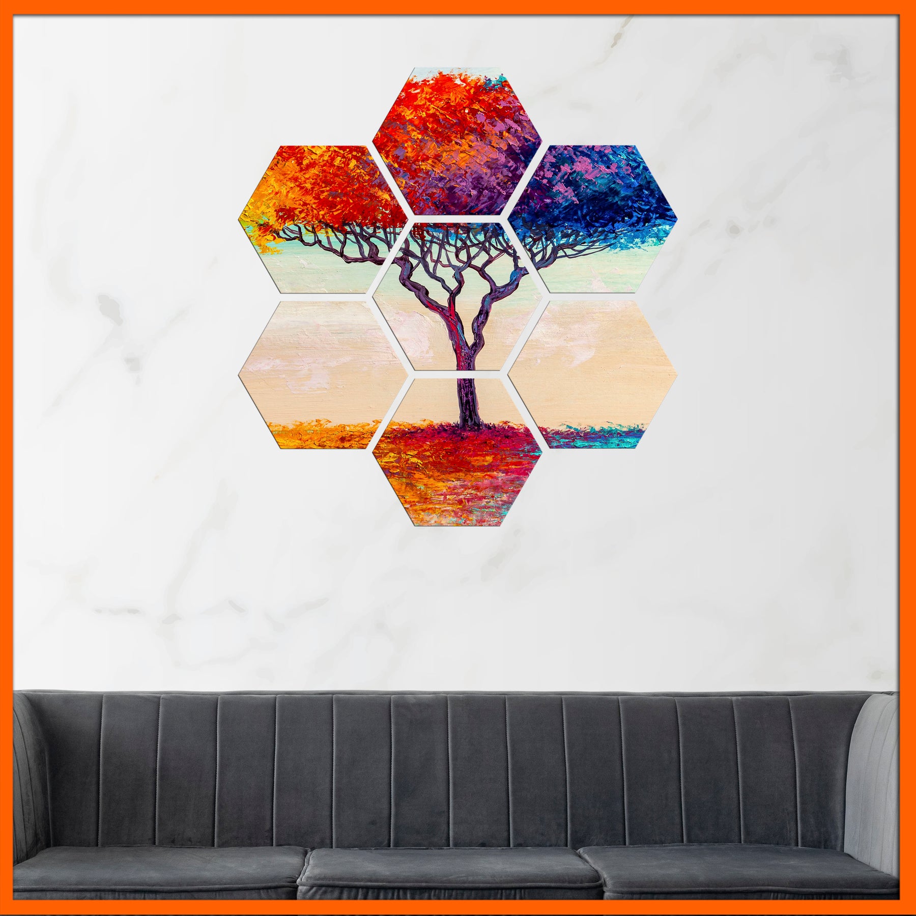 Multi color Tree Hexagonal Canvas Wall Painting