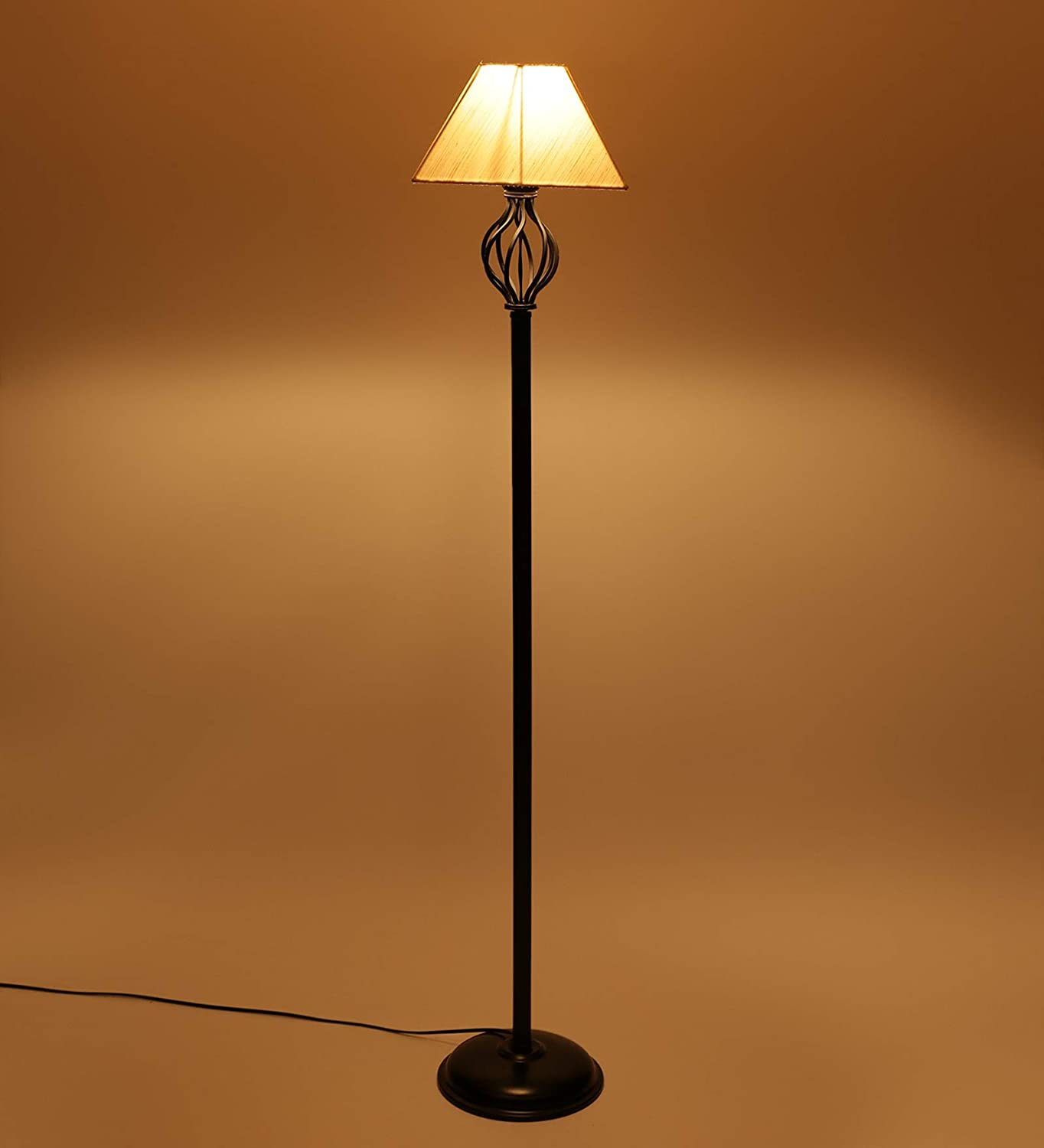 Off White Rectangular Basket Stick Pipe Wrought Iron Floor Lamp (Off-White)