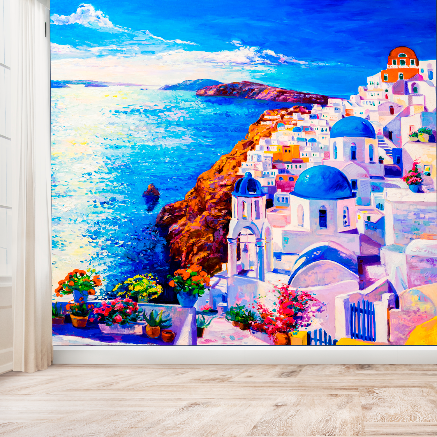 DECORGLANCE Town Street Artistic View Digitally Painting Wallpaper
