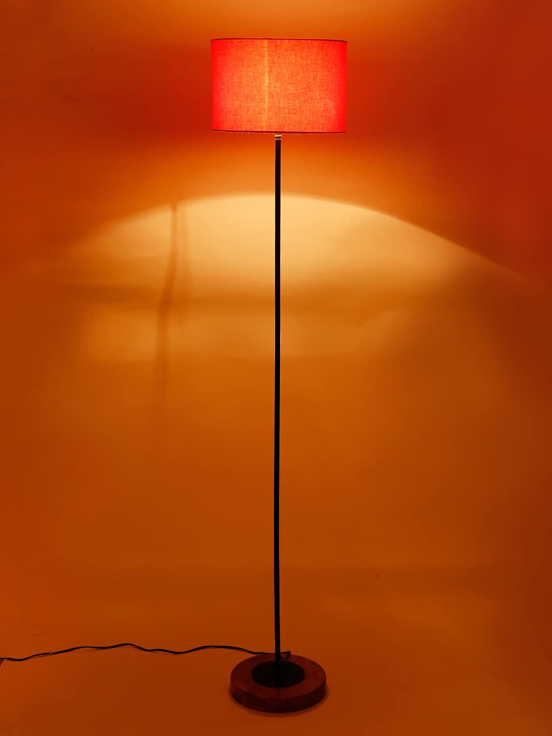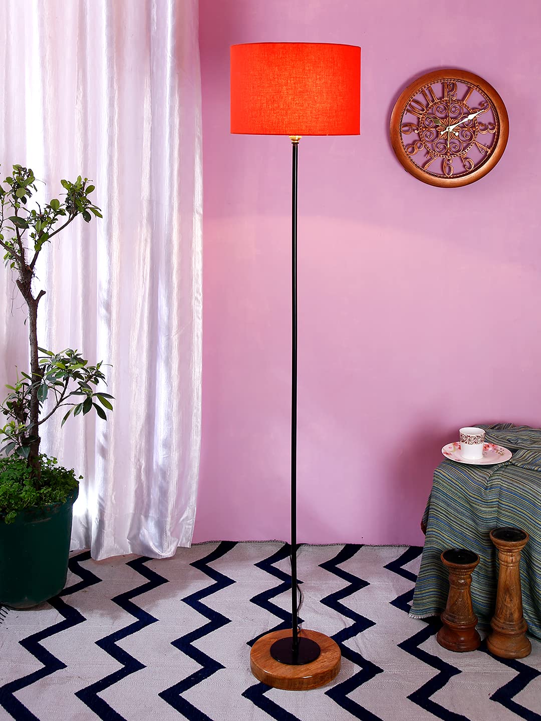 Orange Drum Cotton Shade Stick Floor Lamp with Wood Round Base