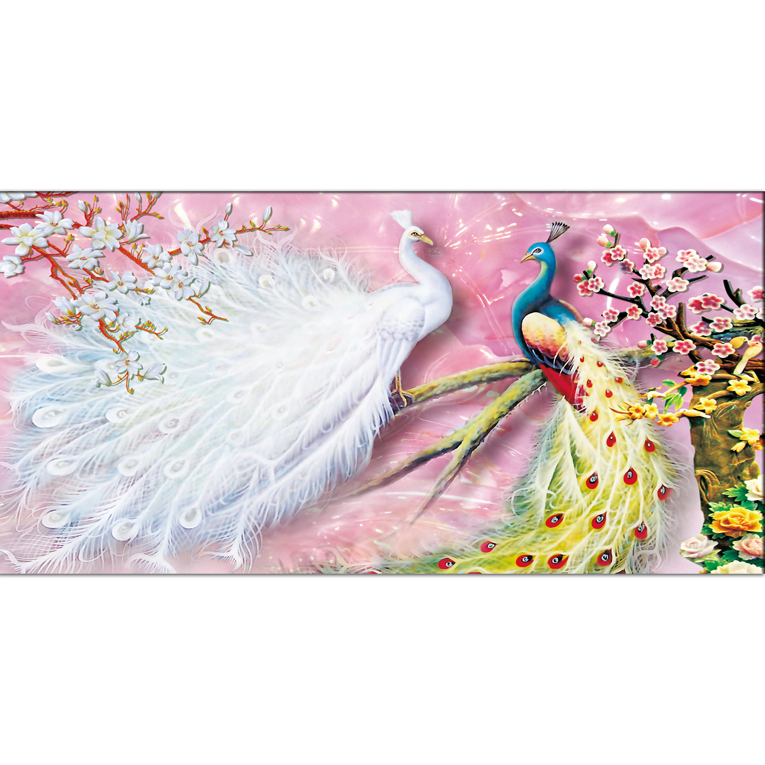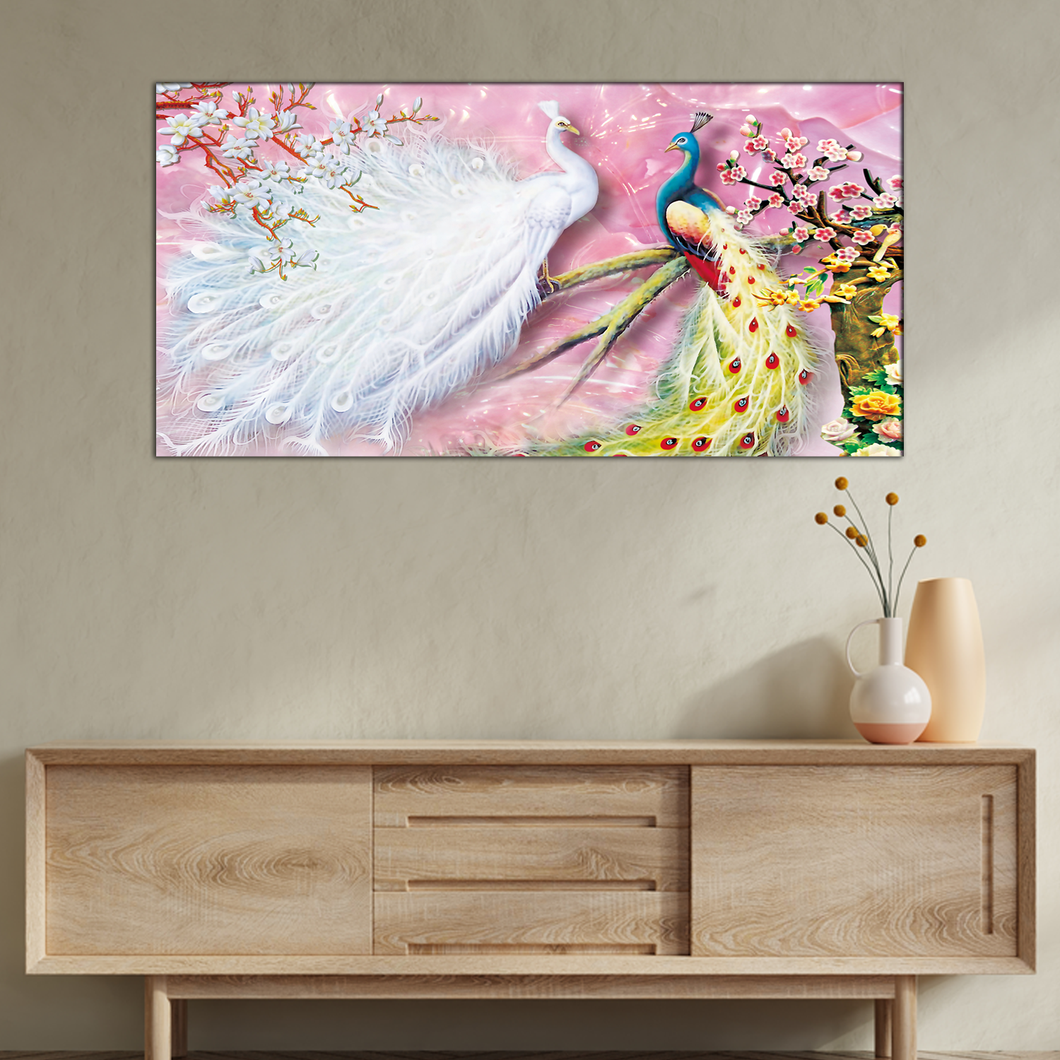 Beautiful White & Colored Peacock Canvas Wall Painting