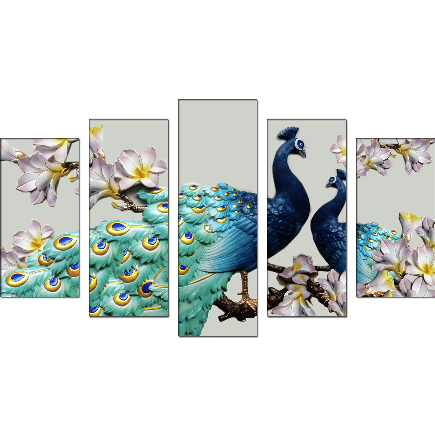 Couple Of Peacock Canvas Wall Painting- With 5 Frames