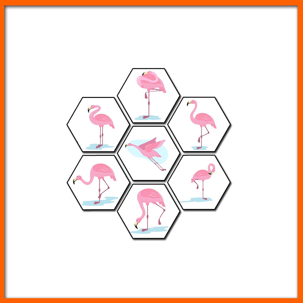 Pink Flamingos Hexagonal Canvas Wall Painting - 7pcs