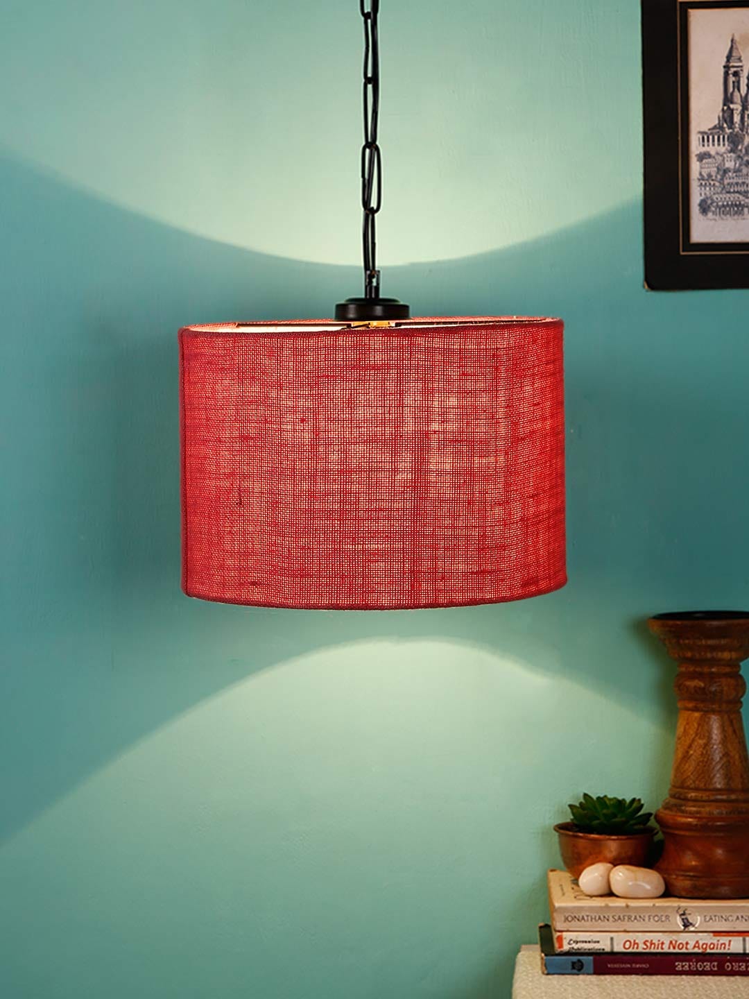 Pink Jute Drum Hanging Lamp