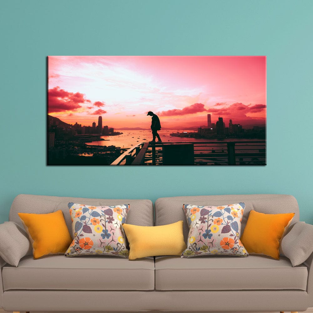 DecorGlance Pink Sky During Sunset Canvas Wall Painting