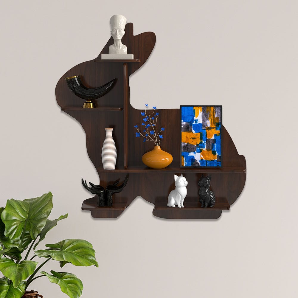 DecorGlance Wall Shelf Regular (37 inches X 38 Inches) / NONBACKLIT Rabbit shape Wood Wall Shelf / Book Shelf /  Walnut Wood