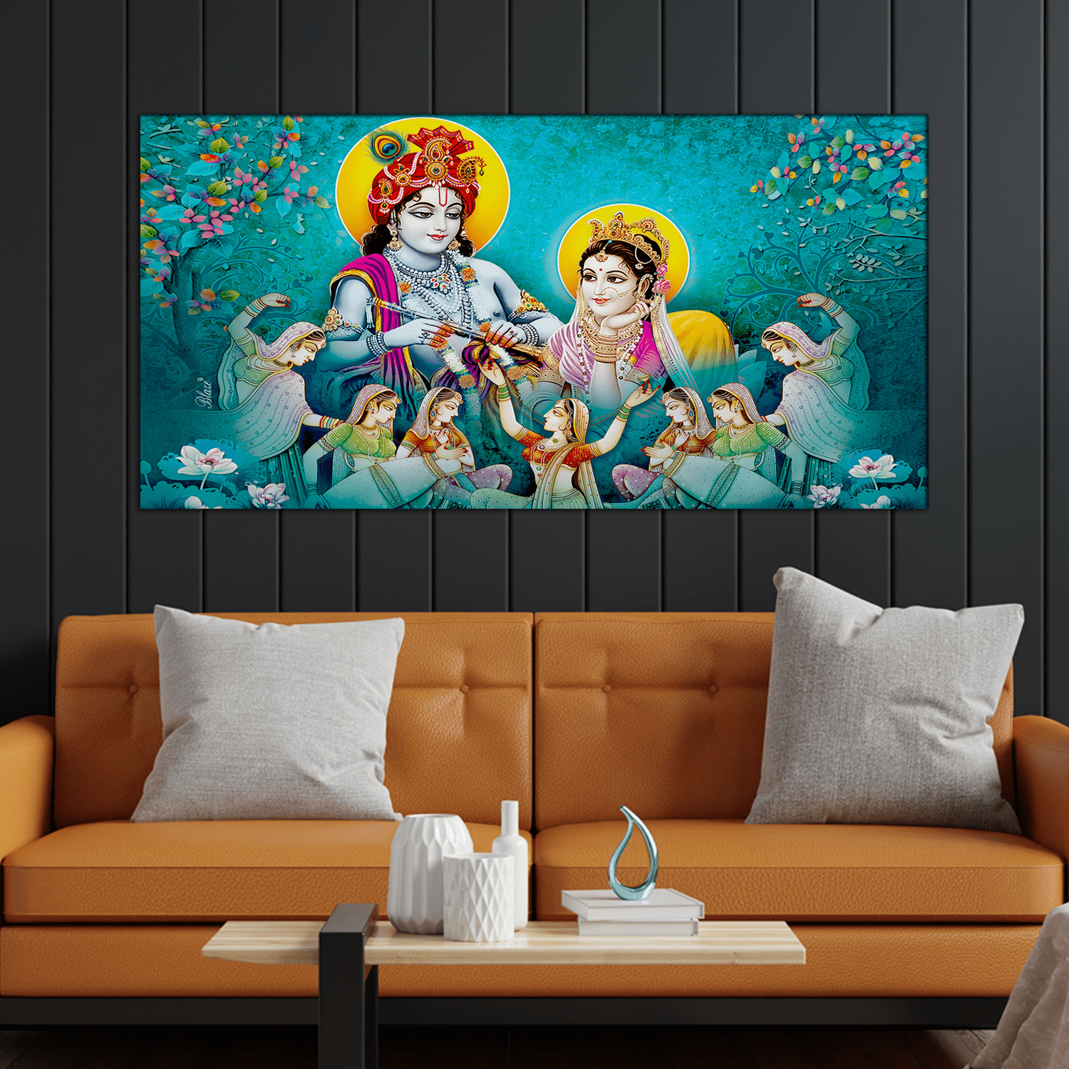 Radha Krishna Enjoying Gopis Dance Canvas Wall Painting