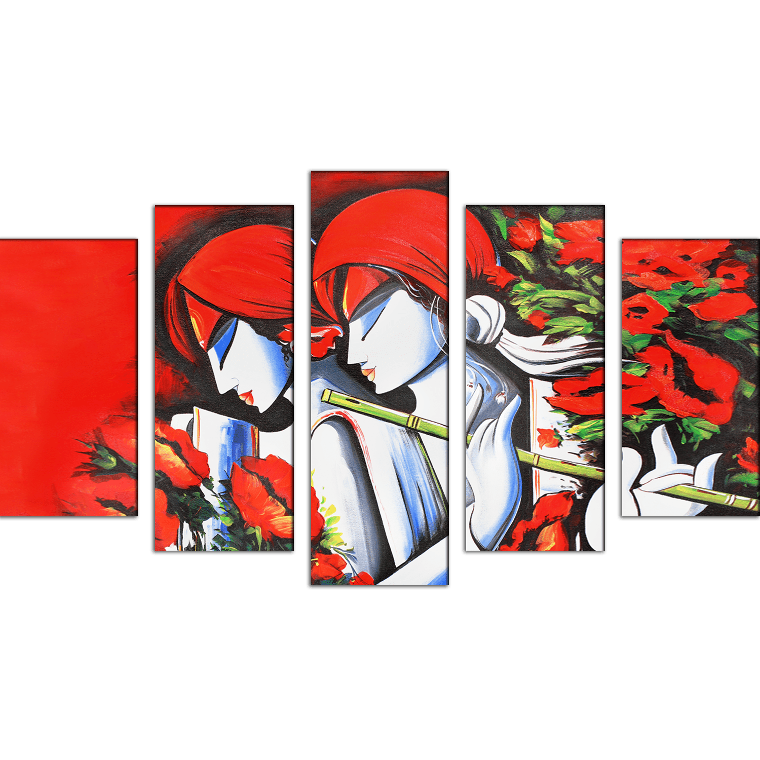 Radha Krishna Modern Abstract Art Wood Framed Canvas Wall Painting- With 5 Frames