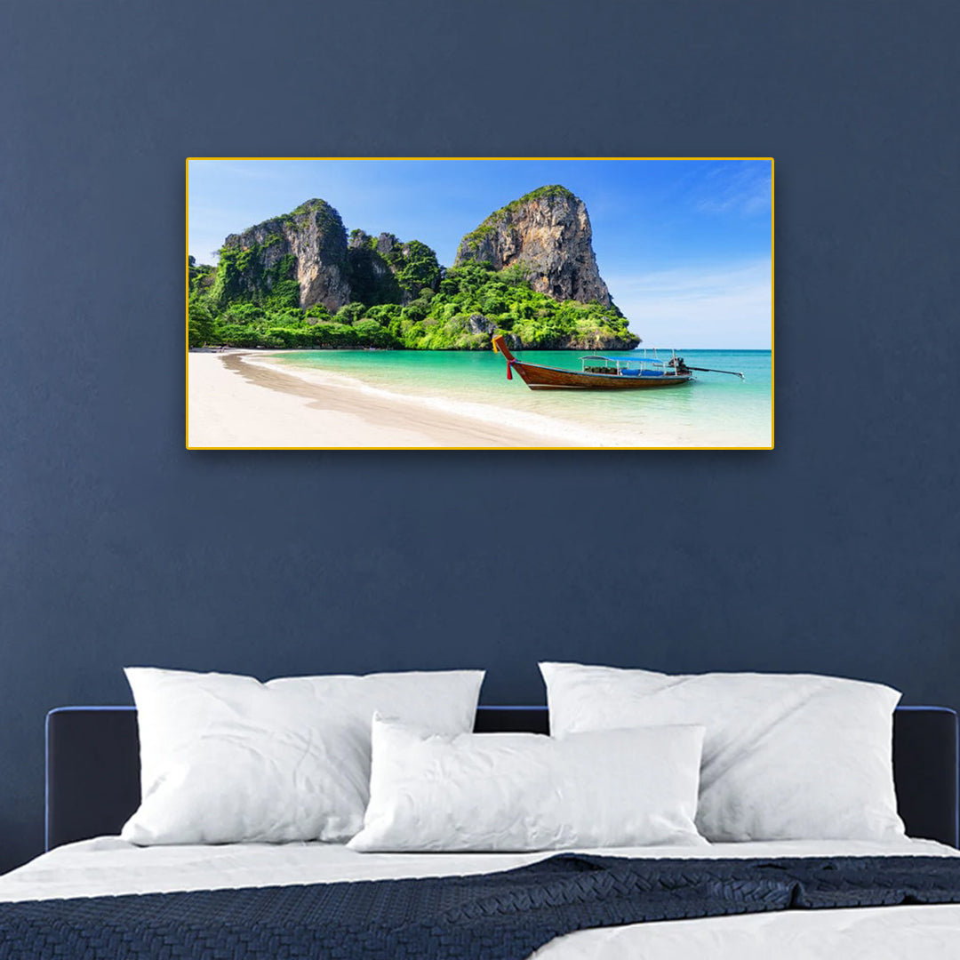 DecorGlance Posters, Prints, & Visual Artwork CANVAS PRINT WHITE FLOATING FRAME / (48x24) Inch / (121x60) Cm Railay Beach Canvas Floating Frame  Wall Painting
