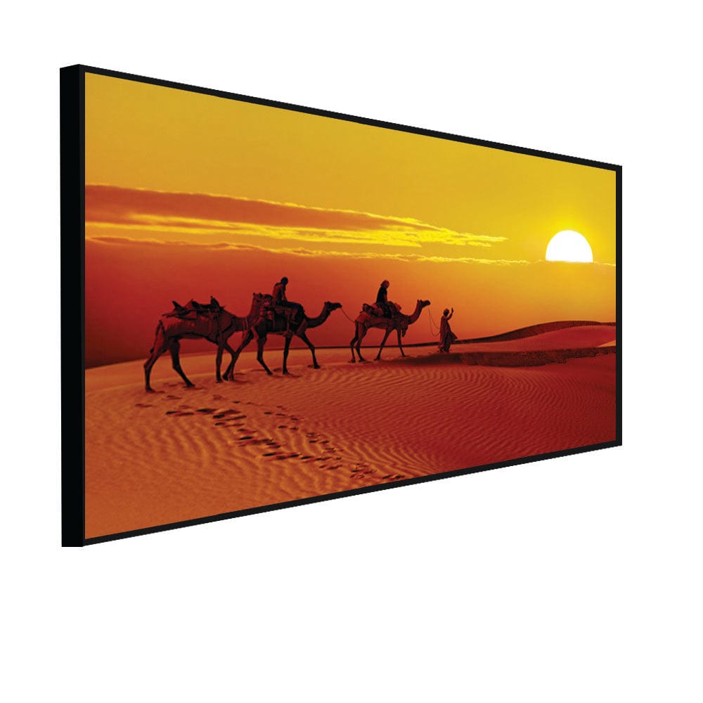 DecorGlance Rectangle painting CANVAS PRINT BLACK FLOATING FRAME / (24 X 48) Inch / (60 X 121) Cm Rajasthani Camel Sunset Abstract Canvas Floating Frame Wall Painting