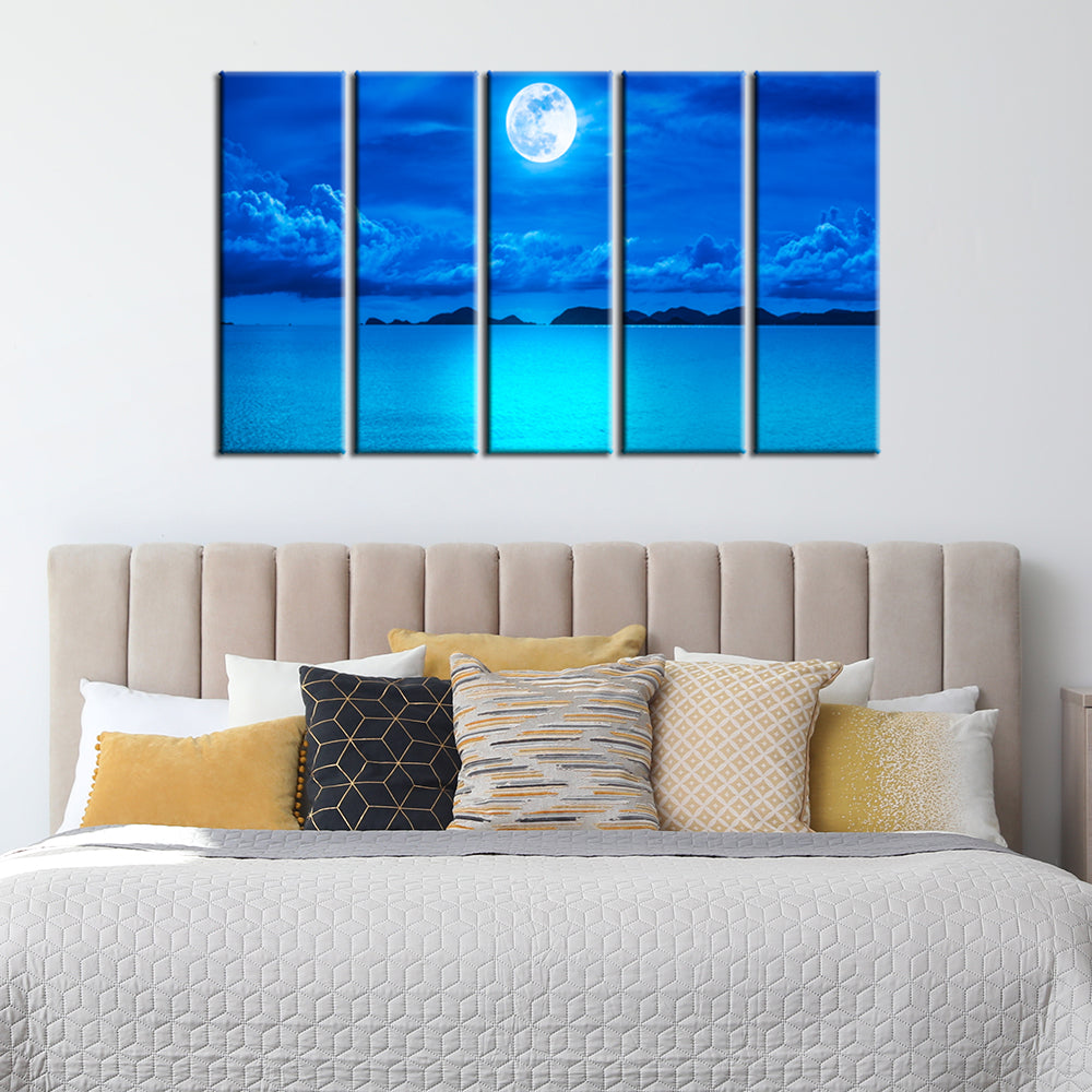 Blue Heaven In Earth Canvas Wall Painting- With 5 Frames