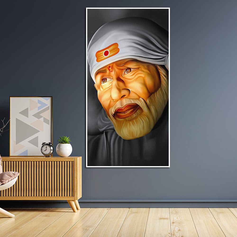 DecorGlance Rectangle painting CANVAS PRINT BLACK FLOATING FRAME / (24x48) Inch / (60x121) Cm Sai Baba Floating Canvas Wall Painting