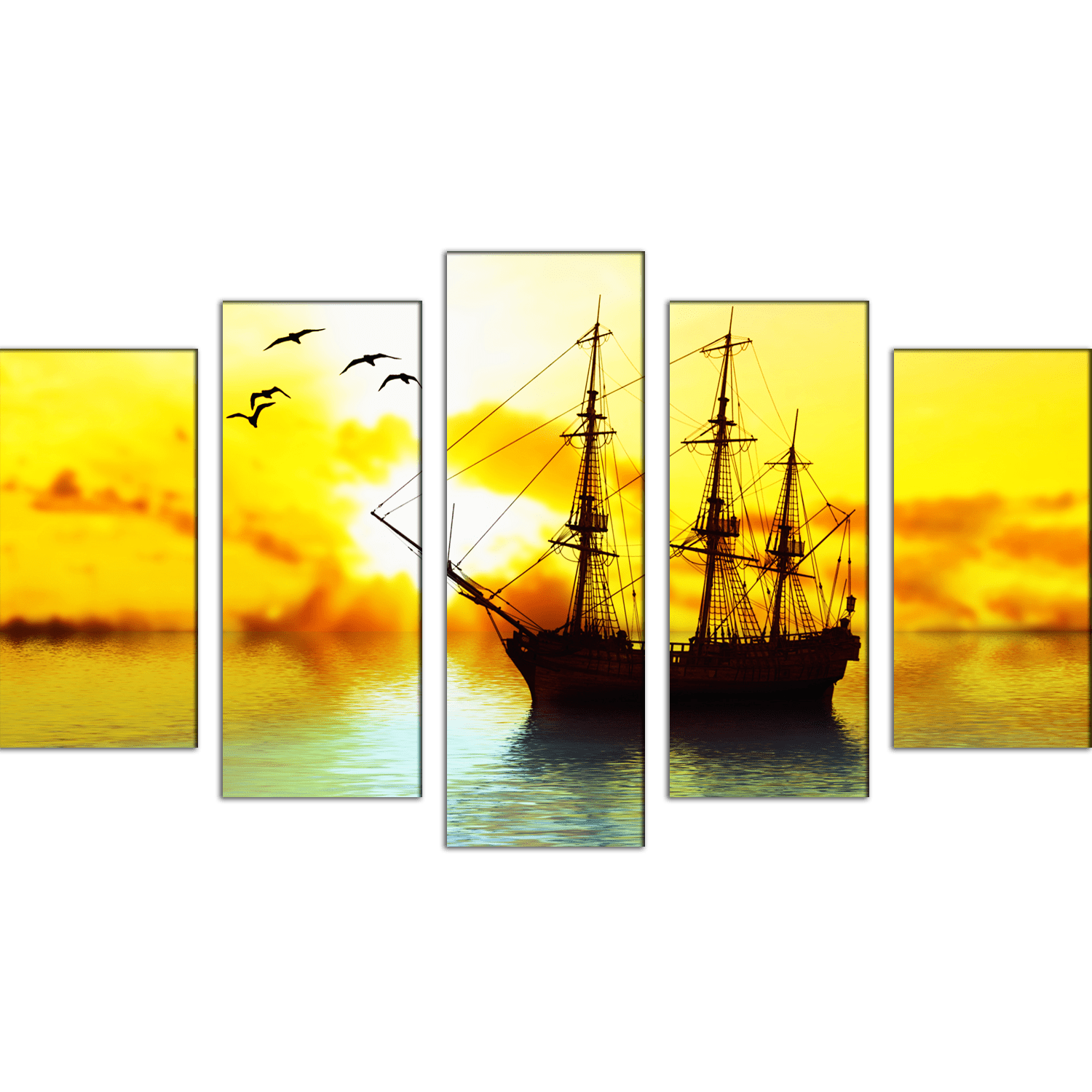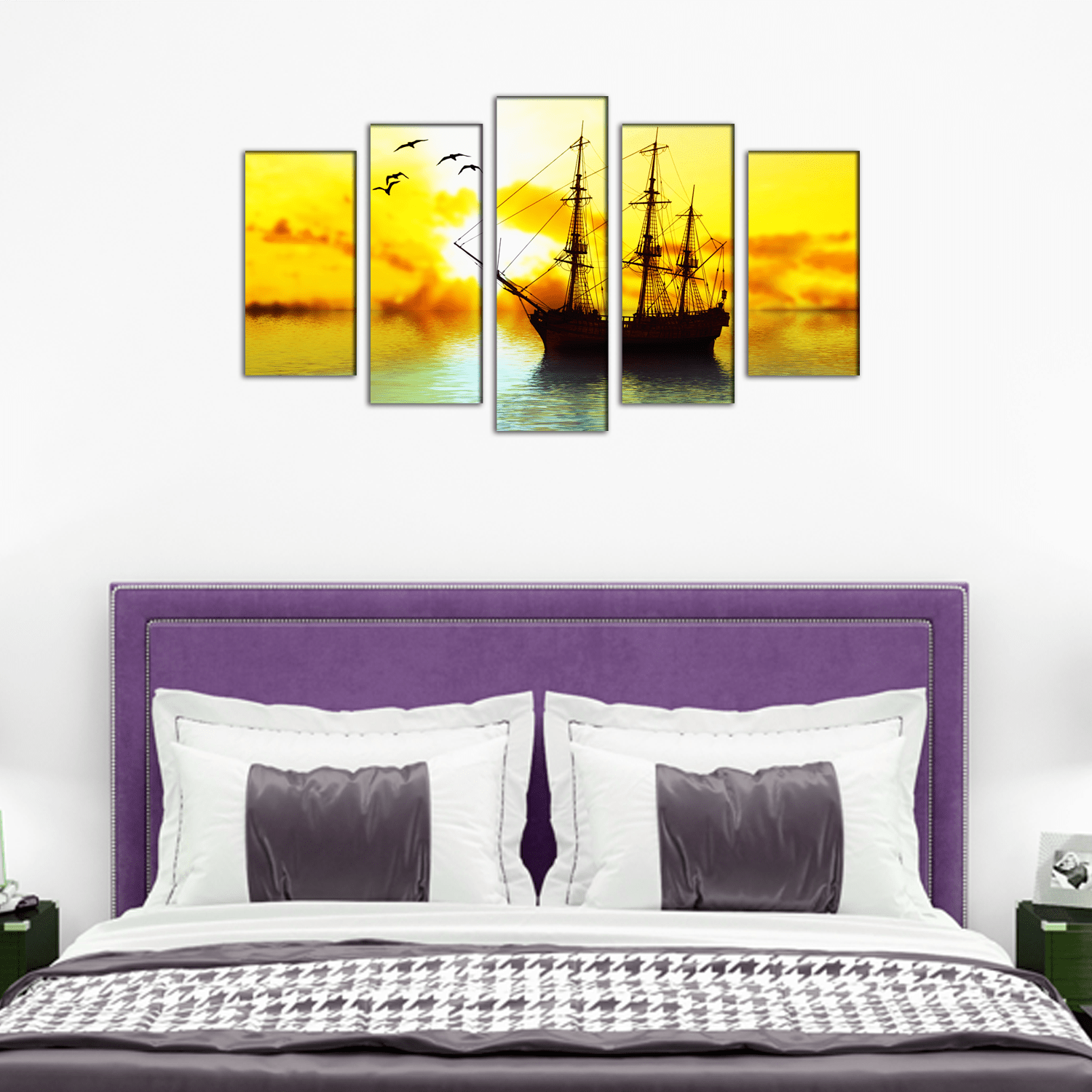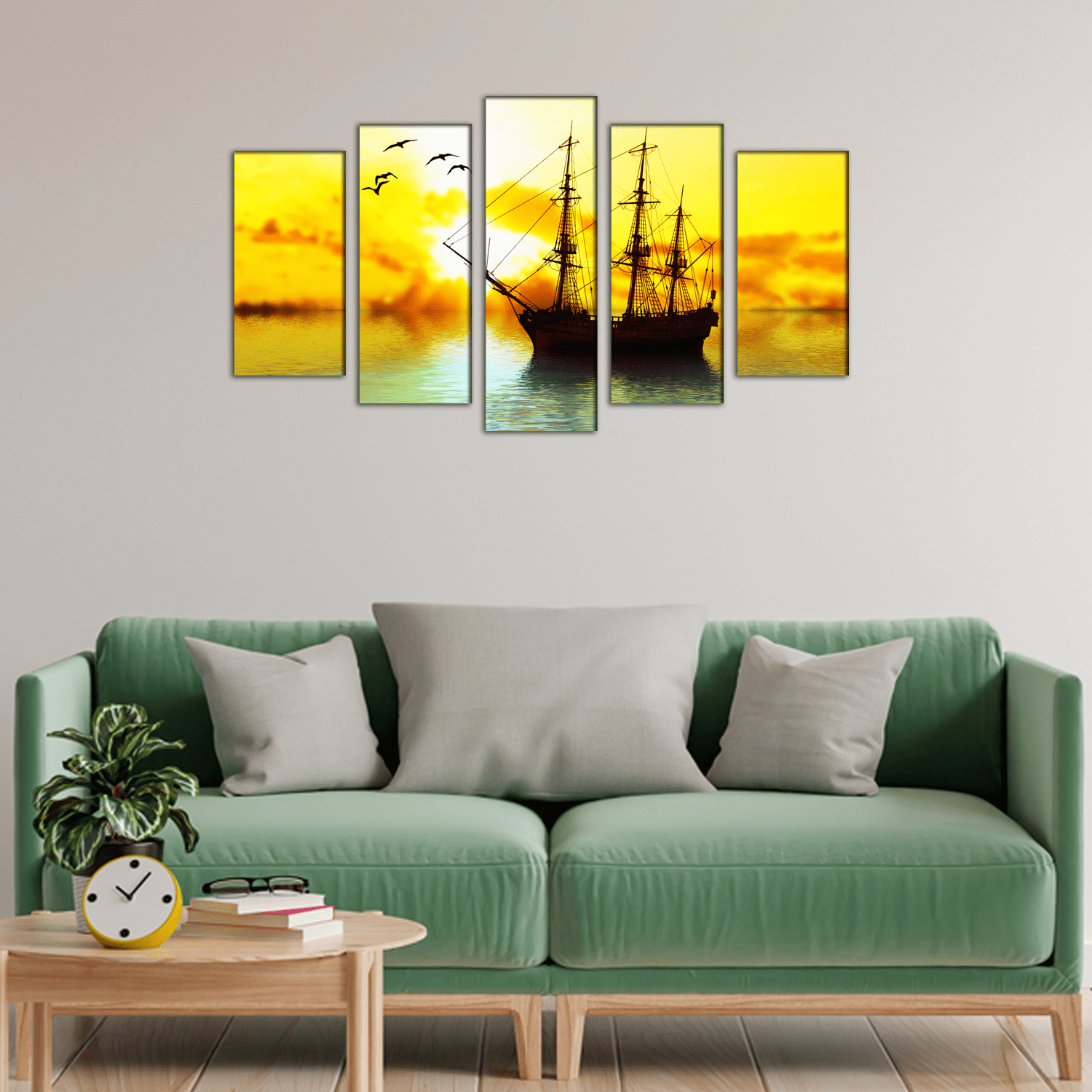 DECORGLANCE Panel painting Sailboat Canvas Wall Painting- With 5 Frames