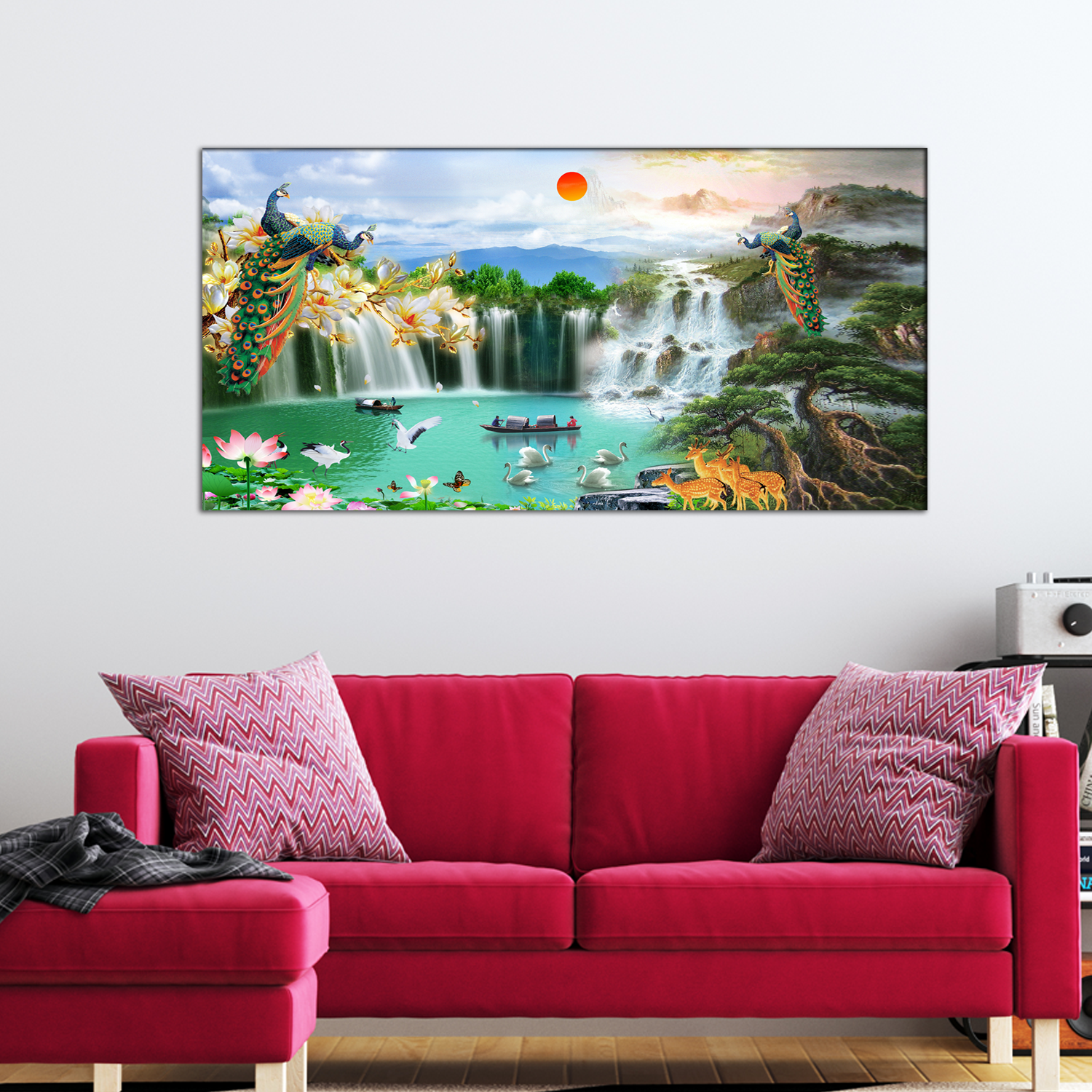 This canvas wall painting comes with a user guide, which will help you how to hang it from the wall of a room in your office/home. Here are some tips that you can follow for hanging/styling/caring your painting: