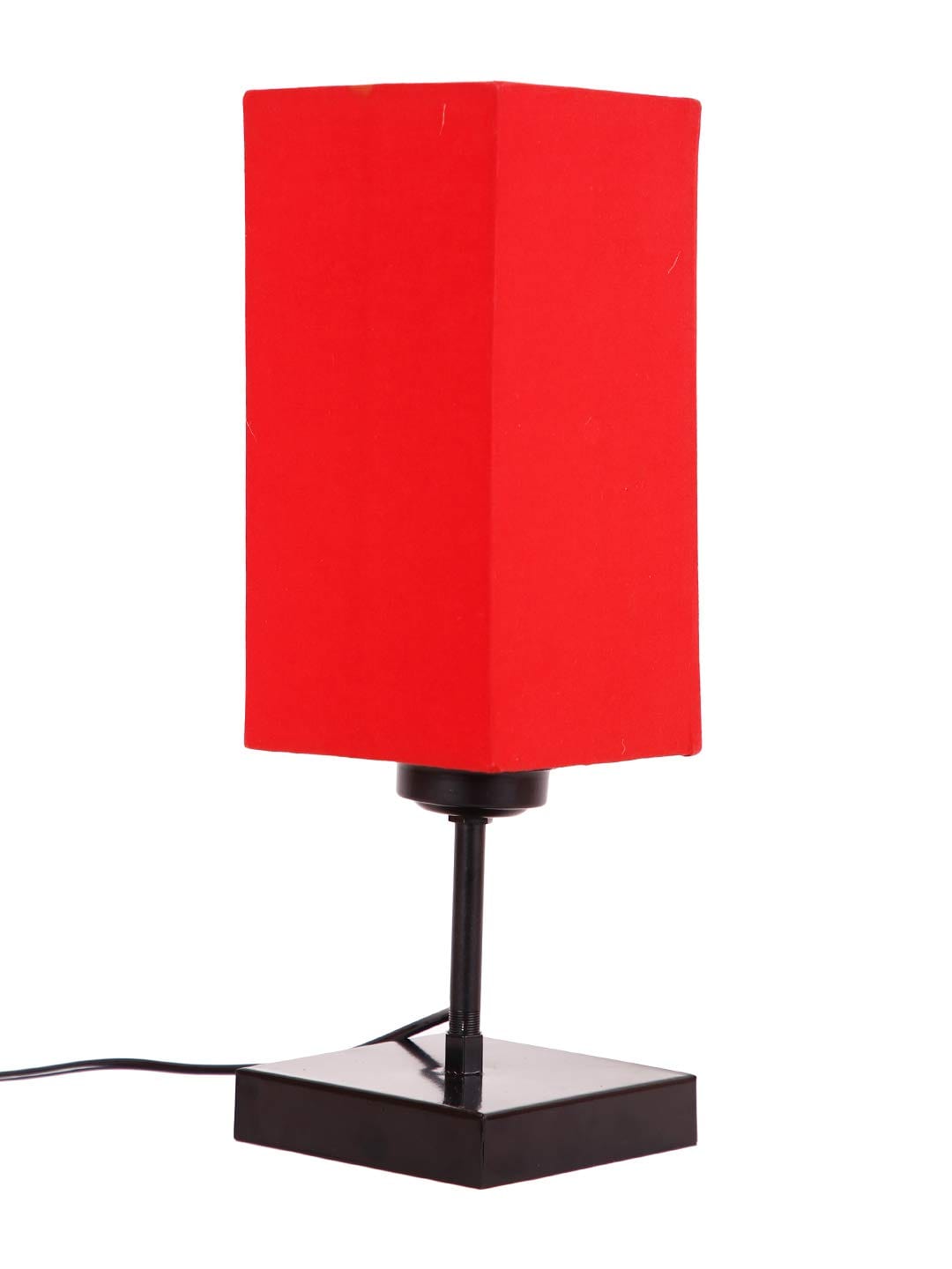 DecorGlance Lamps Square Red Cotton Shade Table Lamp with Iron Base