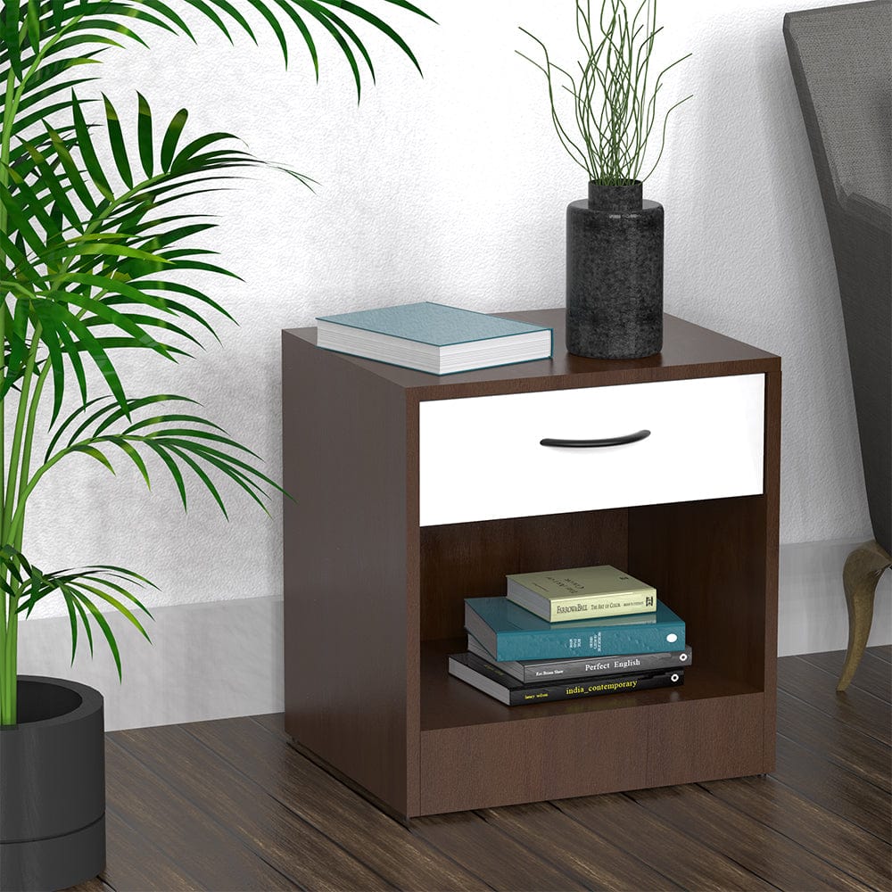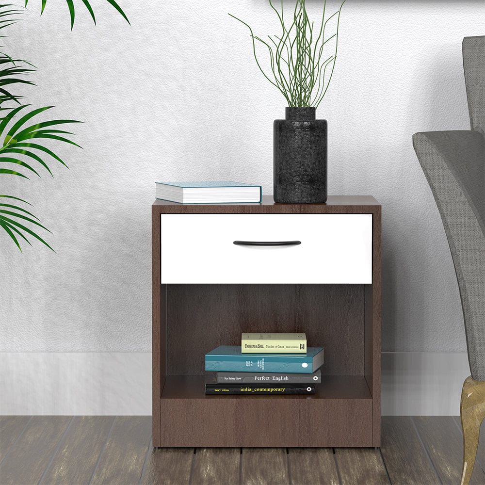 This exquisite matte finish frosty white & walnut wood finish table has a single drawer and a single open rack table which makes it an ideal bedside partner for storage. Made of termite-free, eco-friendly and high-grade engineered wood, it stays and looks new for long. It is a convenient storage space for your small needs while you relax in bed during day and night. Store your essentials like medicines, snacks, munchies inside the drawer and place your favorite lamp, alarm clock & small planters on the table top for enhancing the look of your room. Ideal for living room, Bedroom, Study room, Kid's room. The table comes in already assembled form and does not require any extra nails or screws to take shape.