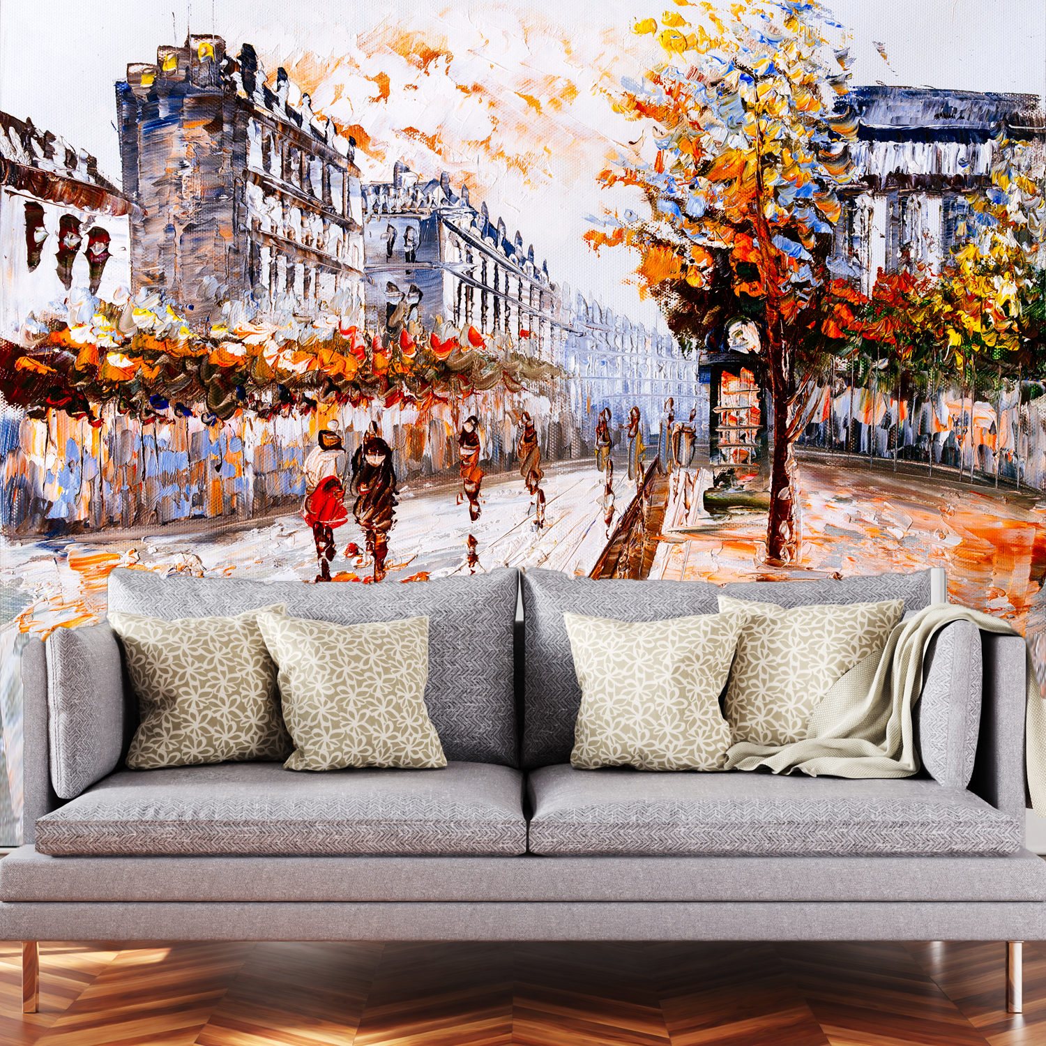 DECORGLANCE Town Street Artistic View Digitally Painting Wallpaper