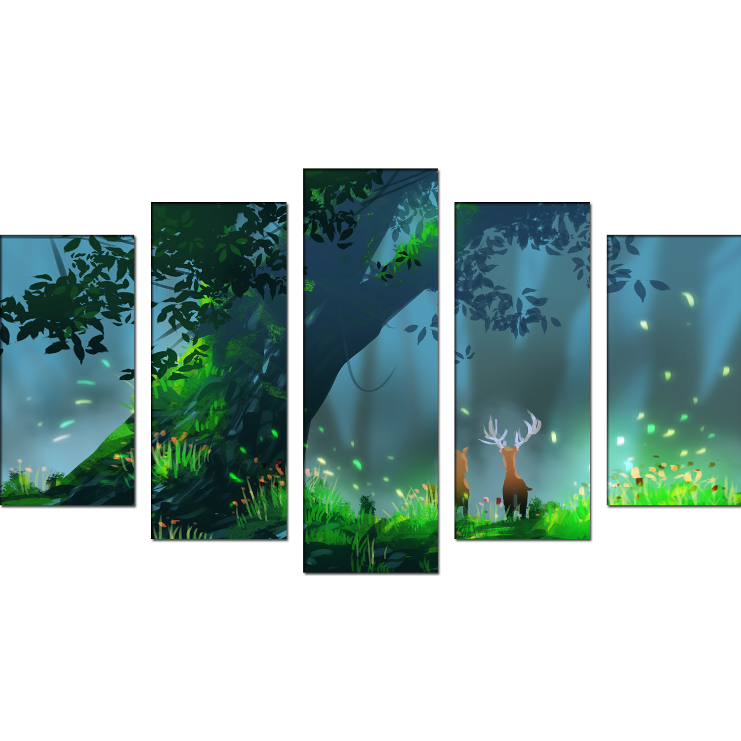 Deer Illustrations Canvas Wall Painting- With 5 Frames