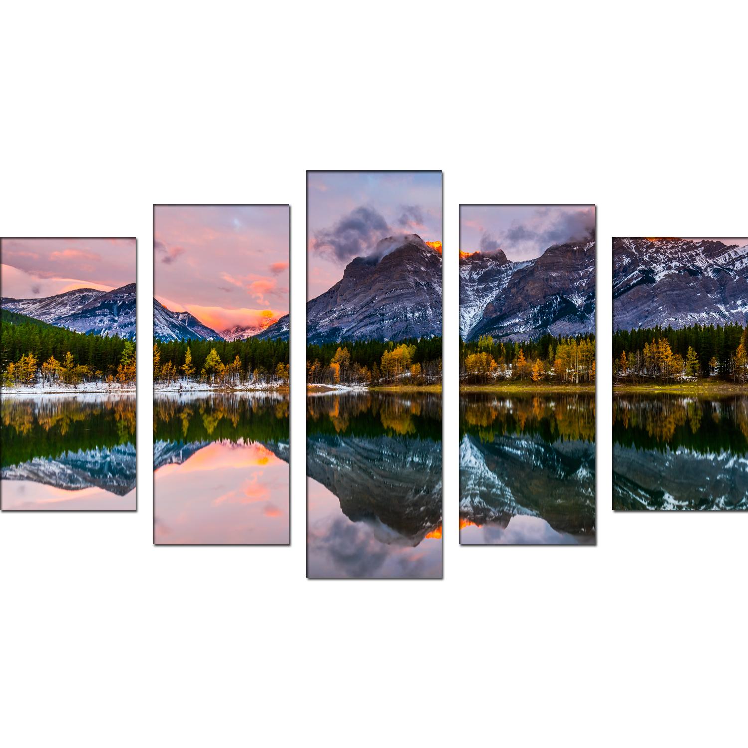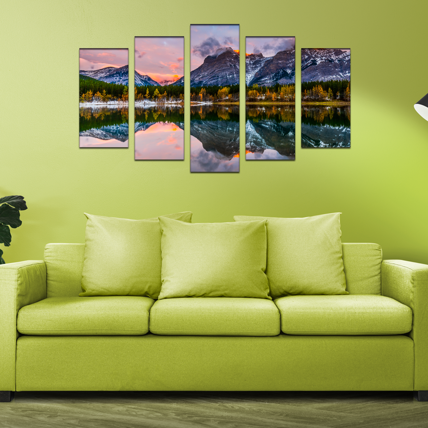Colorful Weather Mountain View Canvas Wall Painting- With 5 Frames