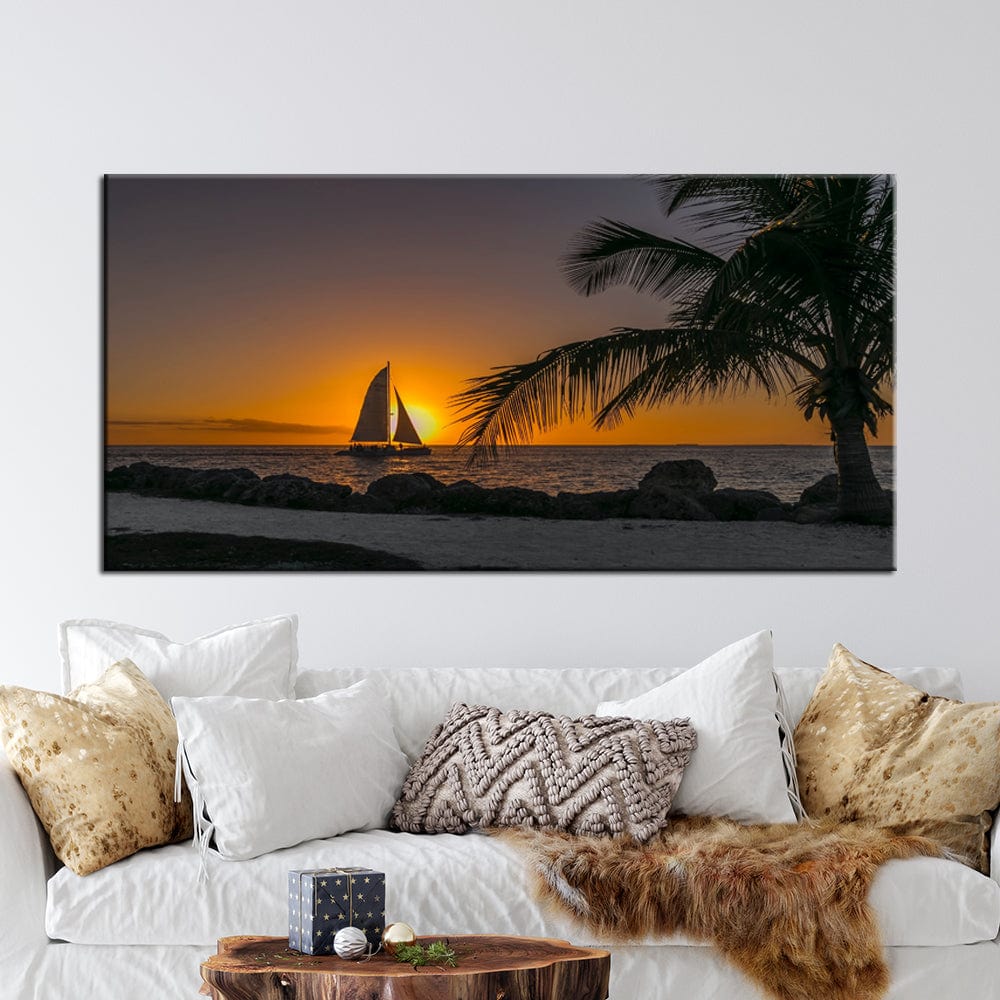 Row Boat In Beach During Sunset Canvas Wall Painting