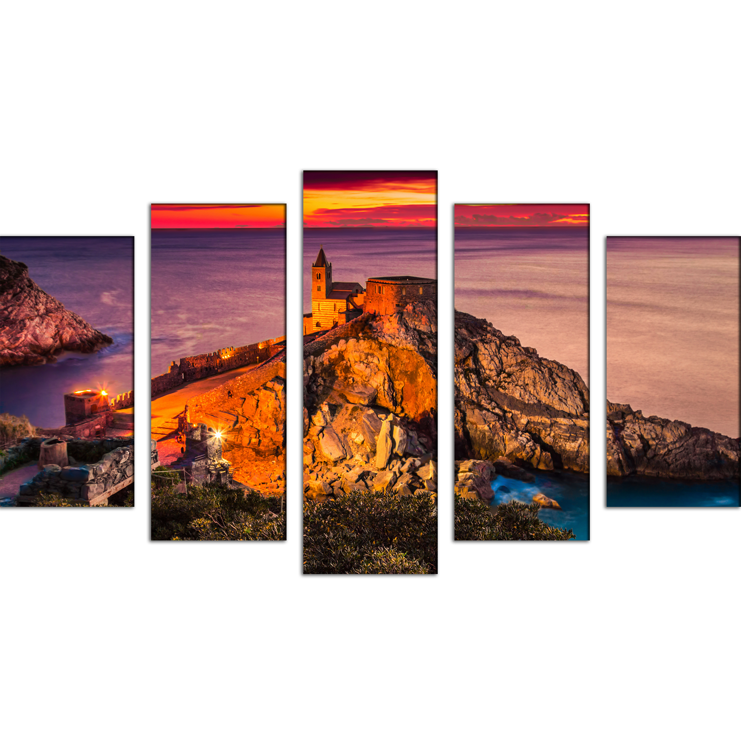 Beautiful Mountain Sunset View Canvas Wall Painting- With 5 Frames