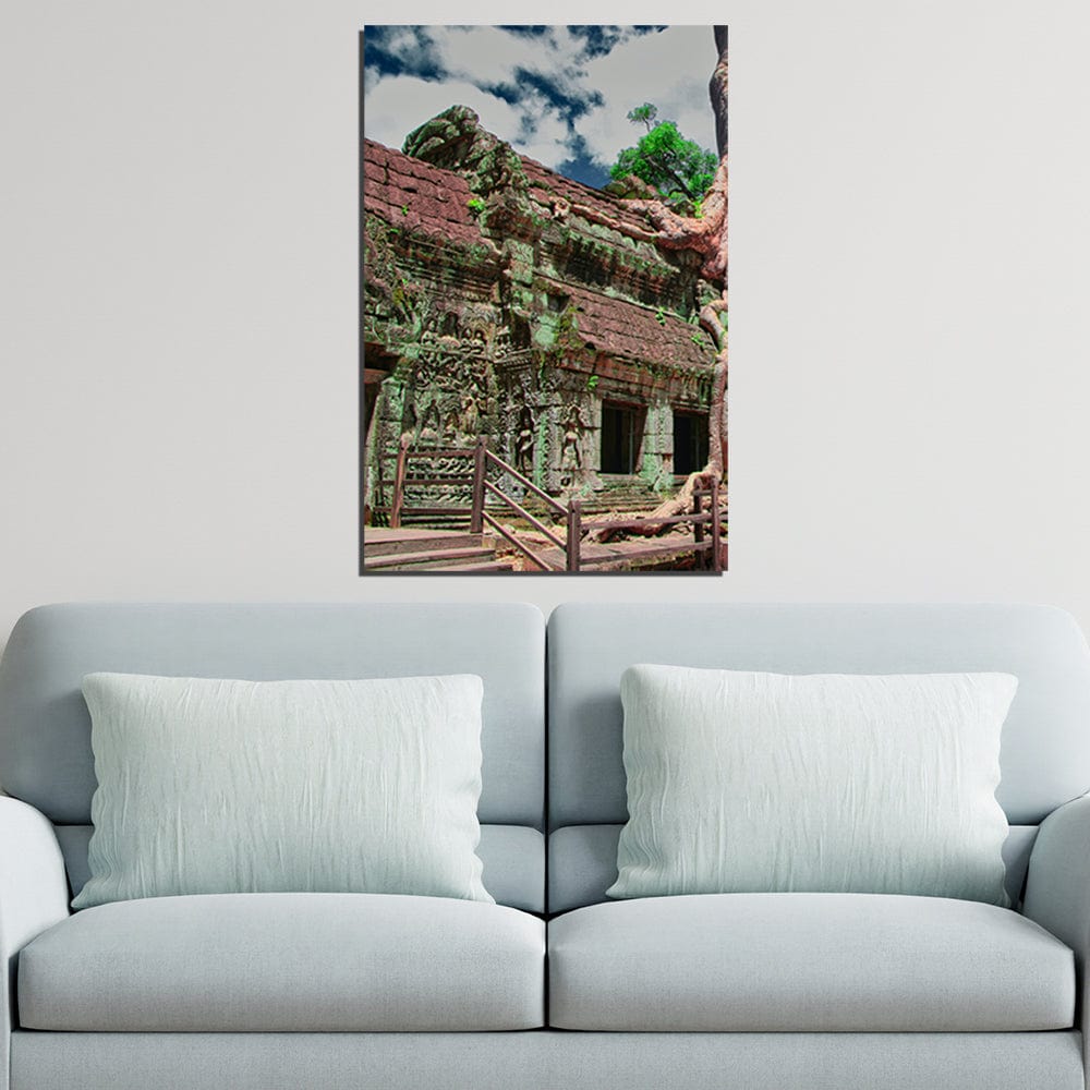 DecorGlance Ta Phrom Abandoned Mini Temple Print On Canvas Wall Painting