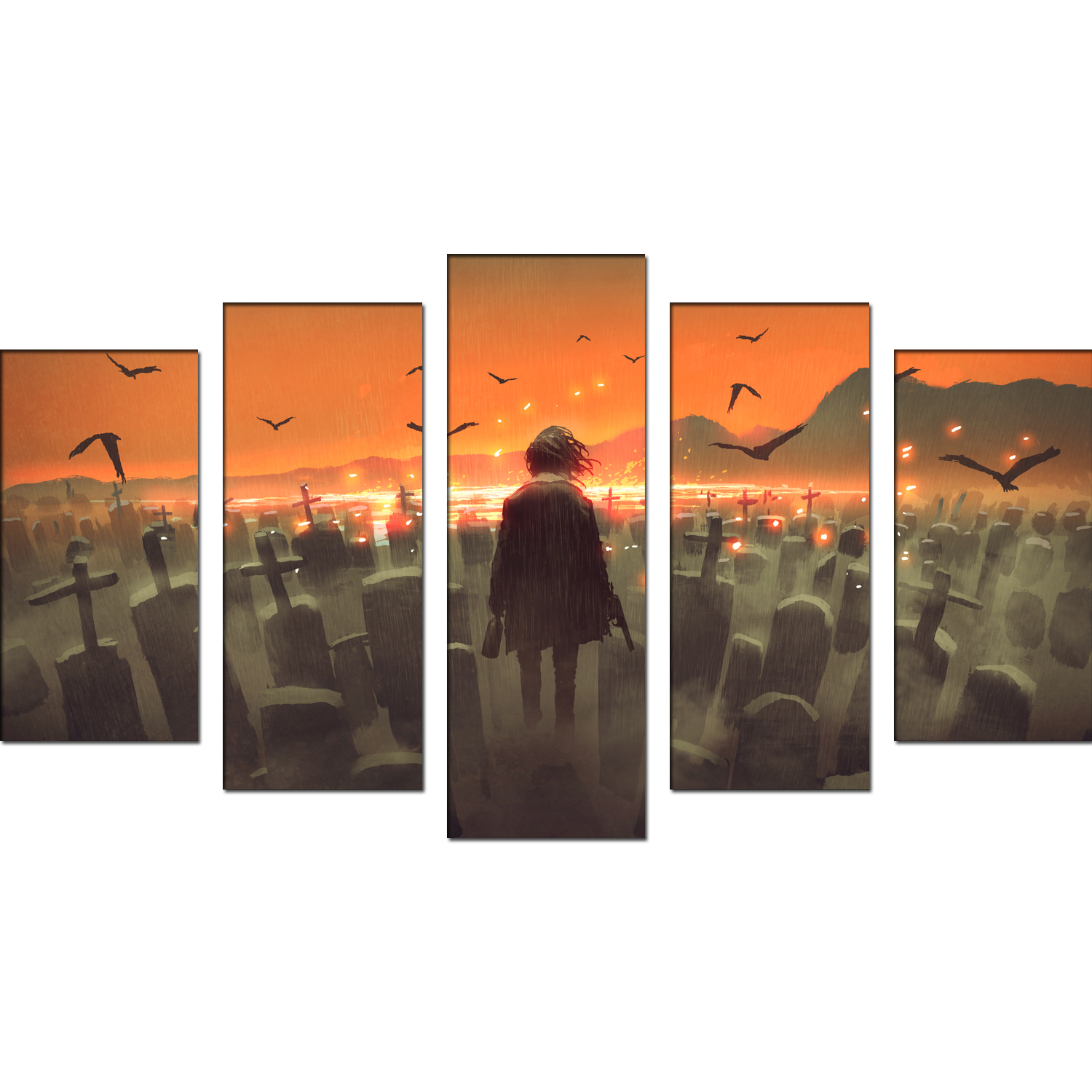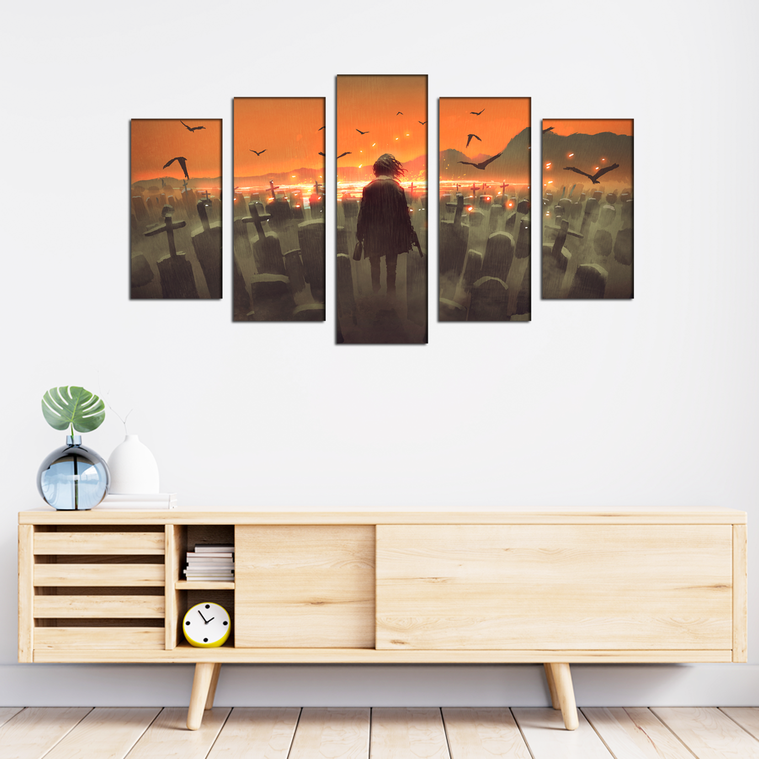 Drunk Man In A Burial Sites Canvas Wall Painting- With 5 Frames