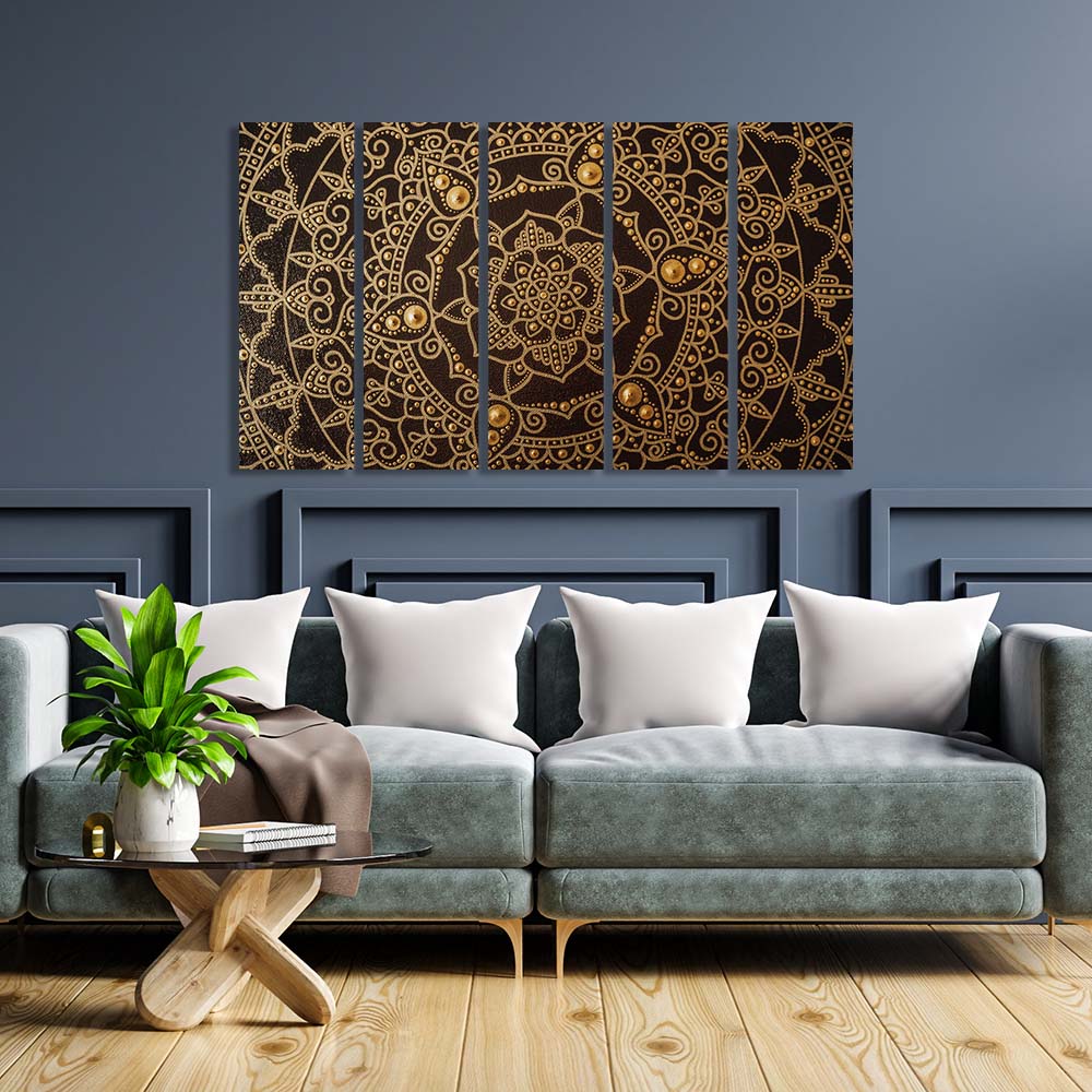 Golden Mandala Art Canvas Wall Painting - With 5 Panel