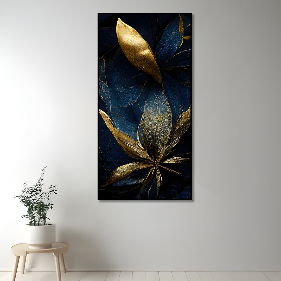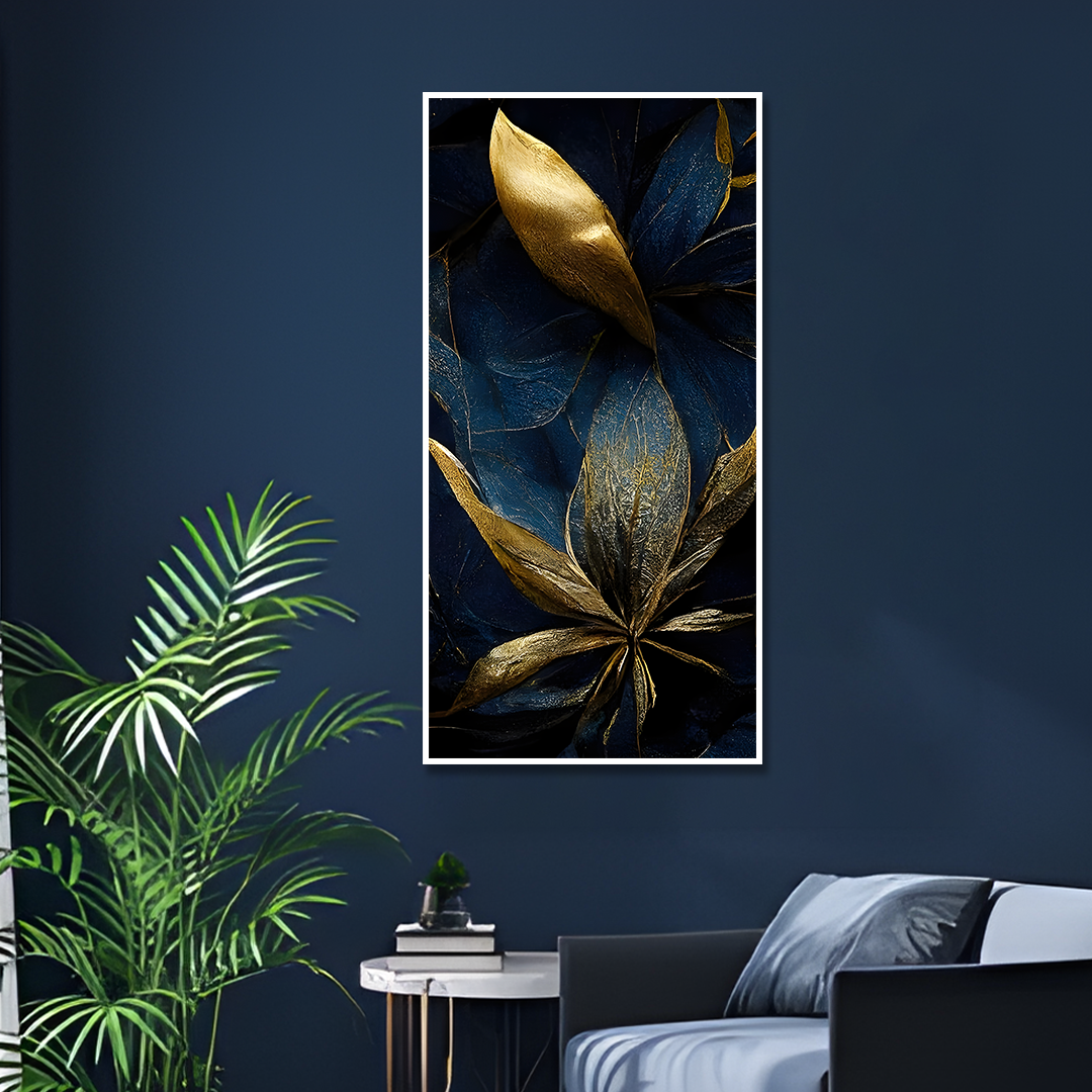 Vertical Golden Textured Tropical leaves Canvas Floating Frame Wall Painting is a symbol of peace & prosperity. Fall in love with this beautiful and designer wall painting as a part of your home decor. Available in three canvas colors, it is a perfect living room painting that can completely change the look of your home. It is mounted on a strong and robust wooden frame which is made of American Pine thereby making it resistant to bending at corners due to the constant pressure of hanging on the wall. These canvas wall art are printed in HD quality and also use Eco-friendly inks that leave no residue or fumes in the environment around where it is put.