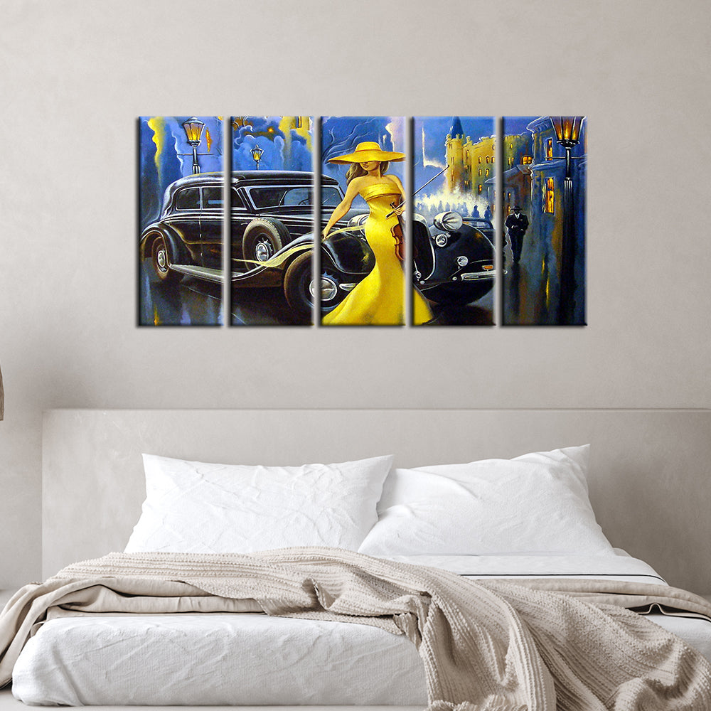 Modern Art Design Girl Canvas Wall Hanging -With 5 Panel