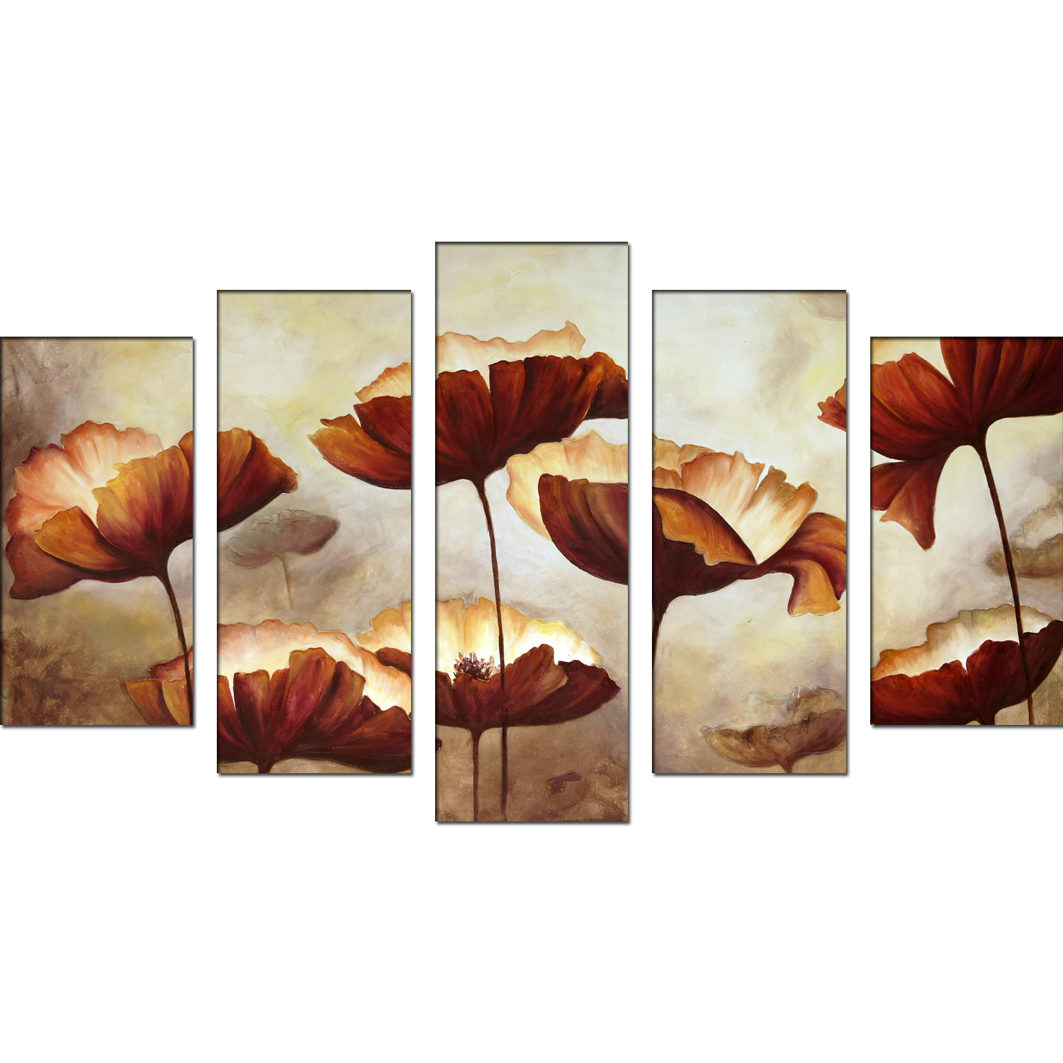 Brown Flower Canvas Wall Painting- With 5 Frames