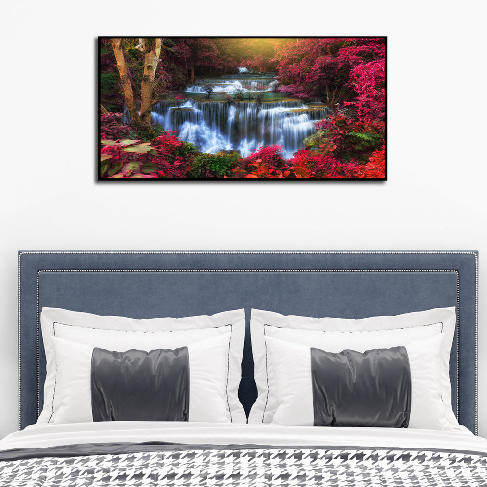 Autumn Waterfall Scenery Canvas Floating Frame Wall Painting