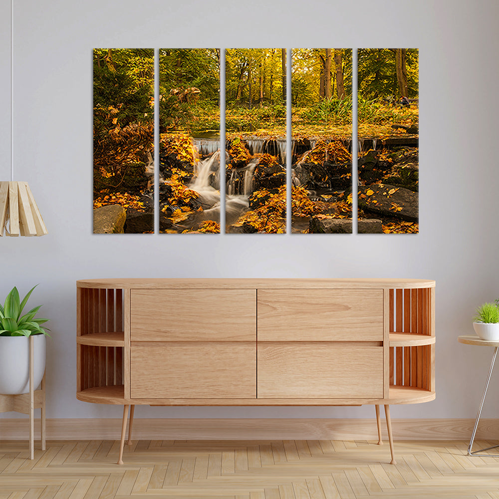 Autumn Season Waterfall Scenery Canvas Wall Painting - With 5 Panel