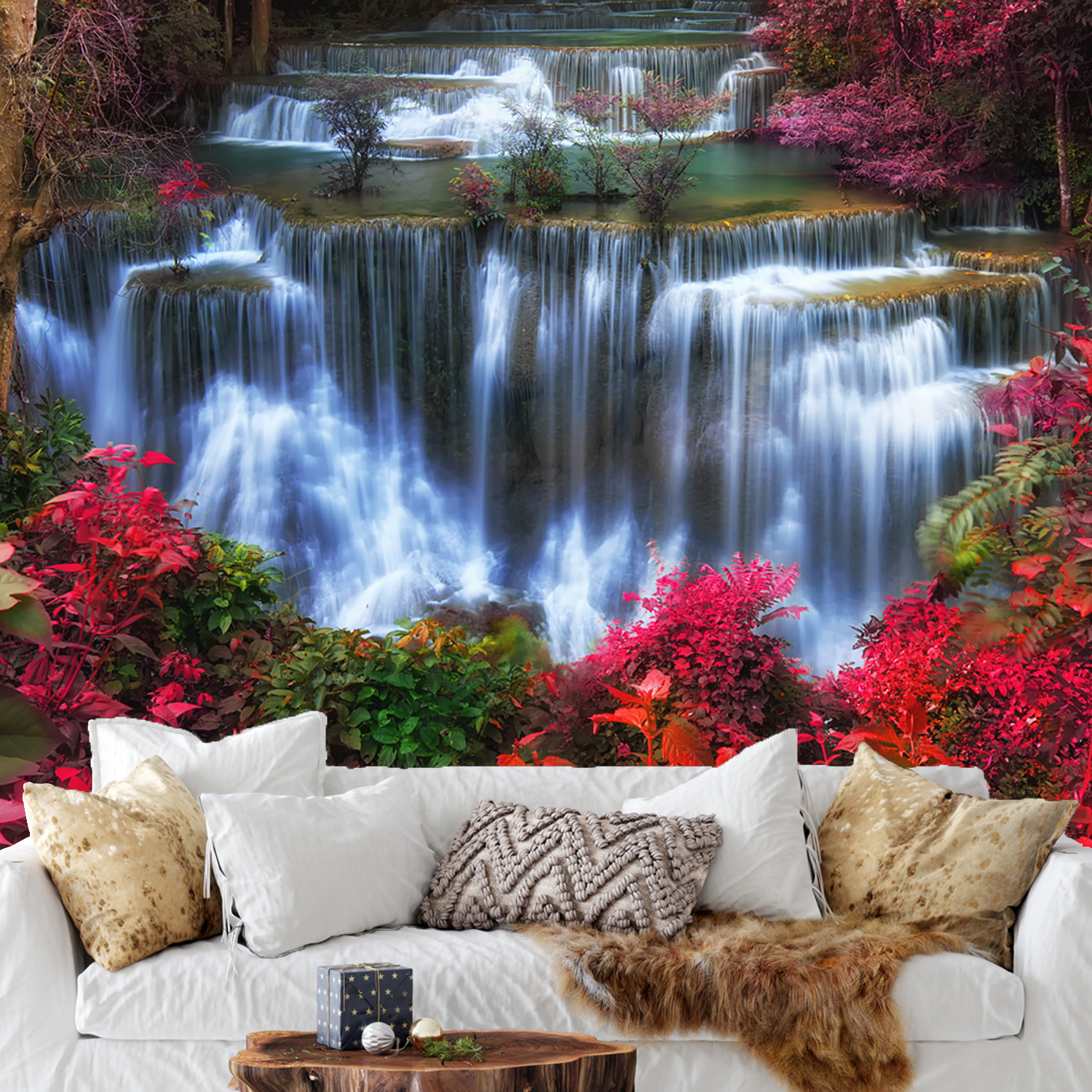 Autumn Waterfall Scenery Digitally Printed Wallpaper