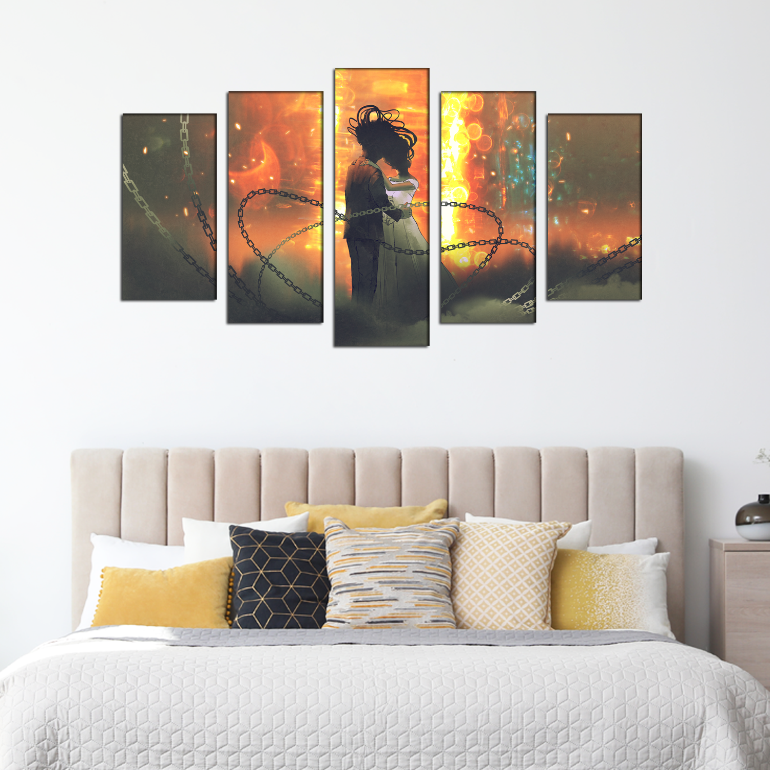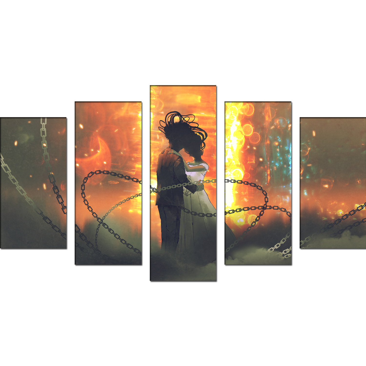 Couple In Fire Background Canvas Wall Painting- With 5 Frames