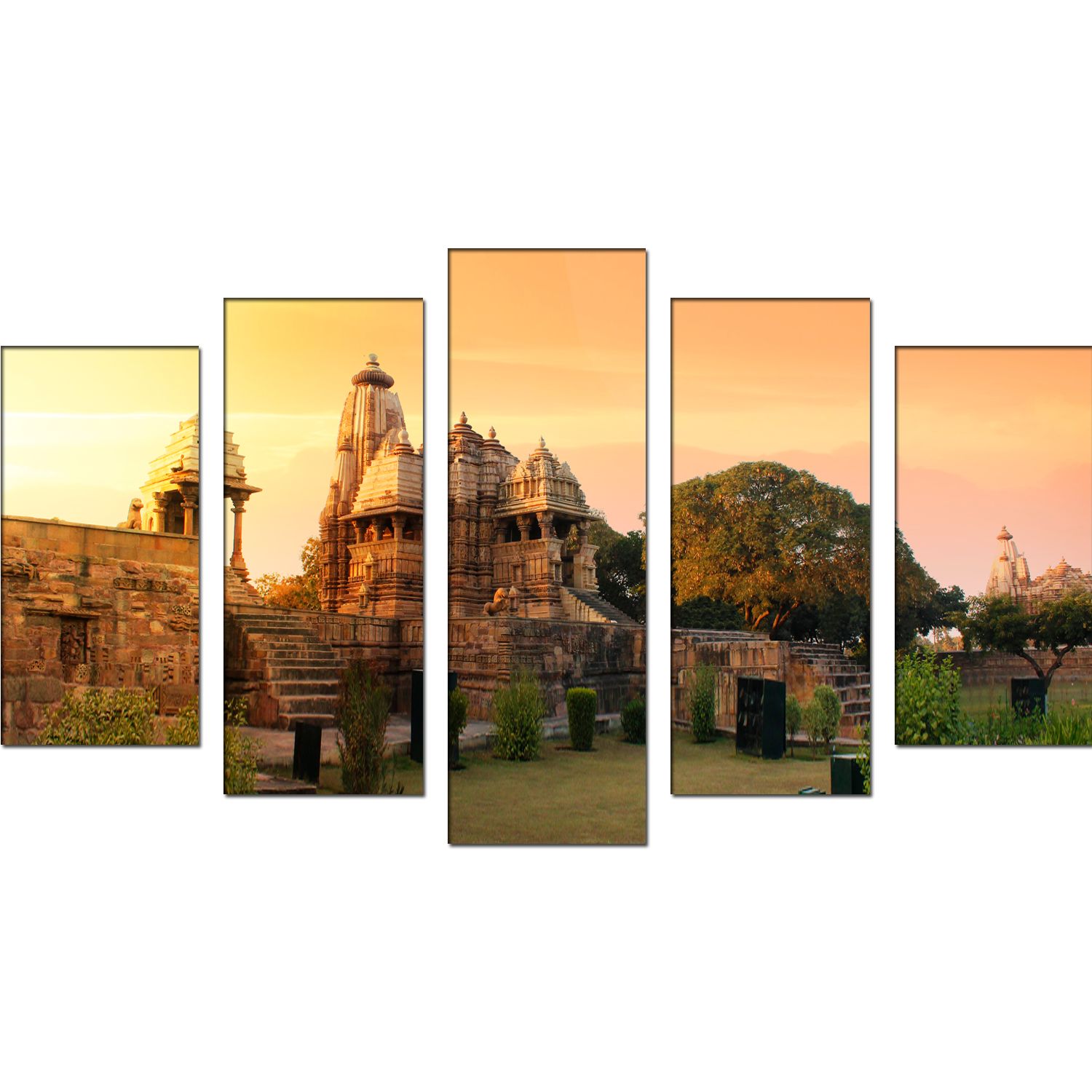Khajuraho Temple Canvas Wall Painting- With 5 Frames