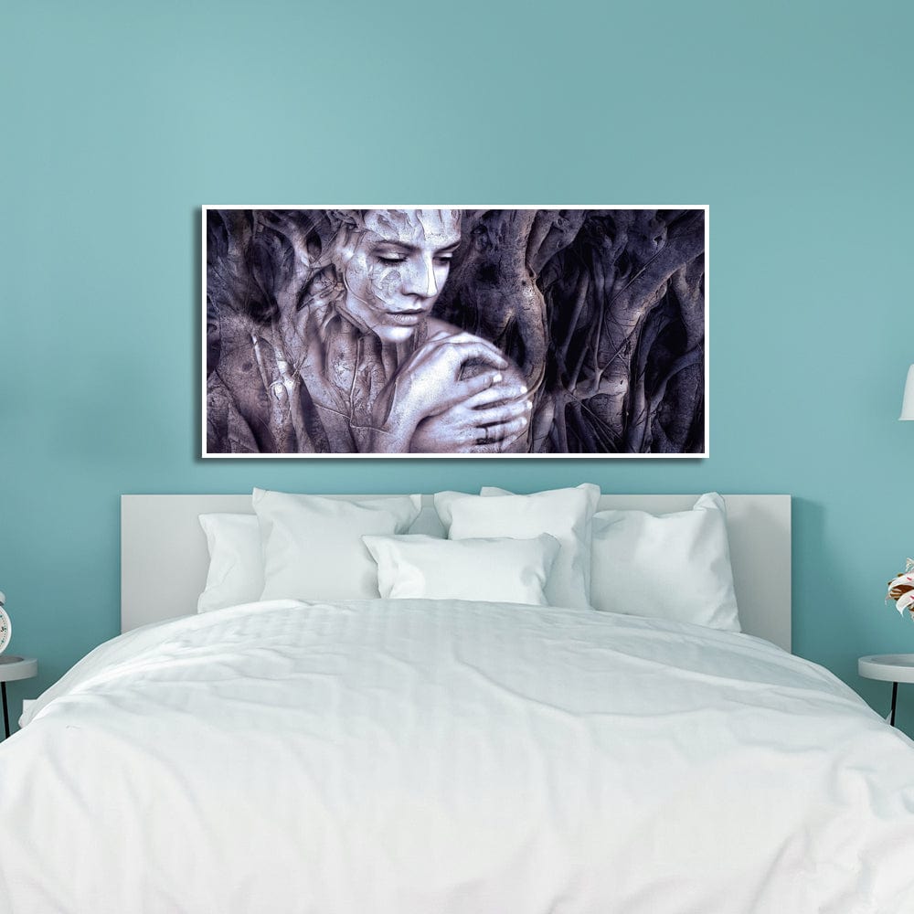 DecorGlance CANVAS PRINT WHITE FLOATING FRAME / (48x24) Inch / (121x60) Cm Women With Tree Fantasy Canvas Floating Frame Wall Painting